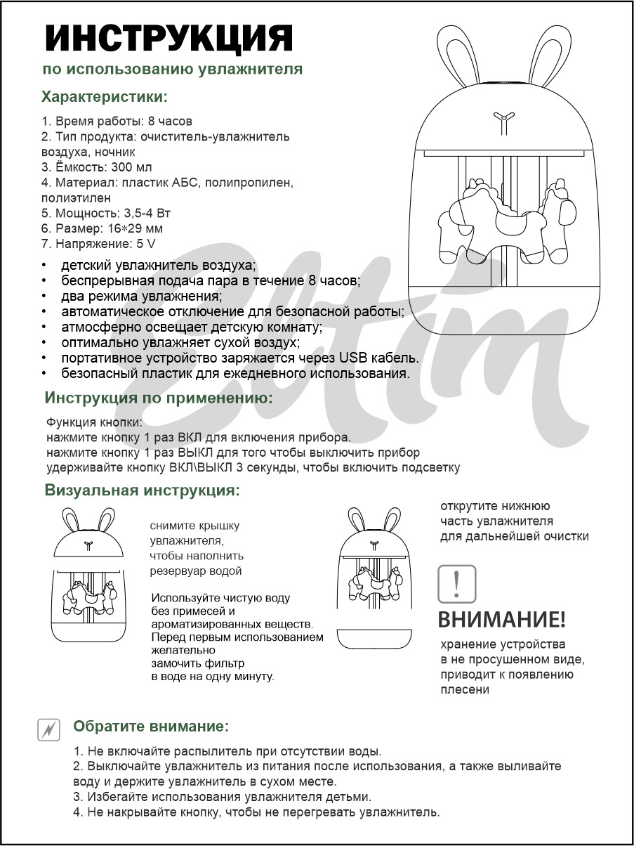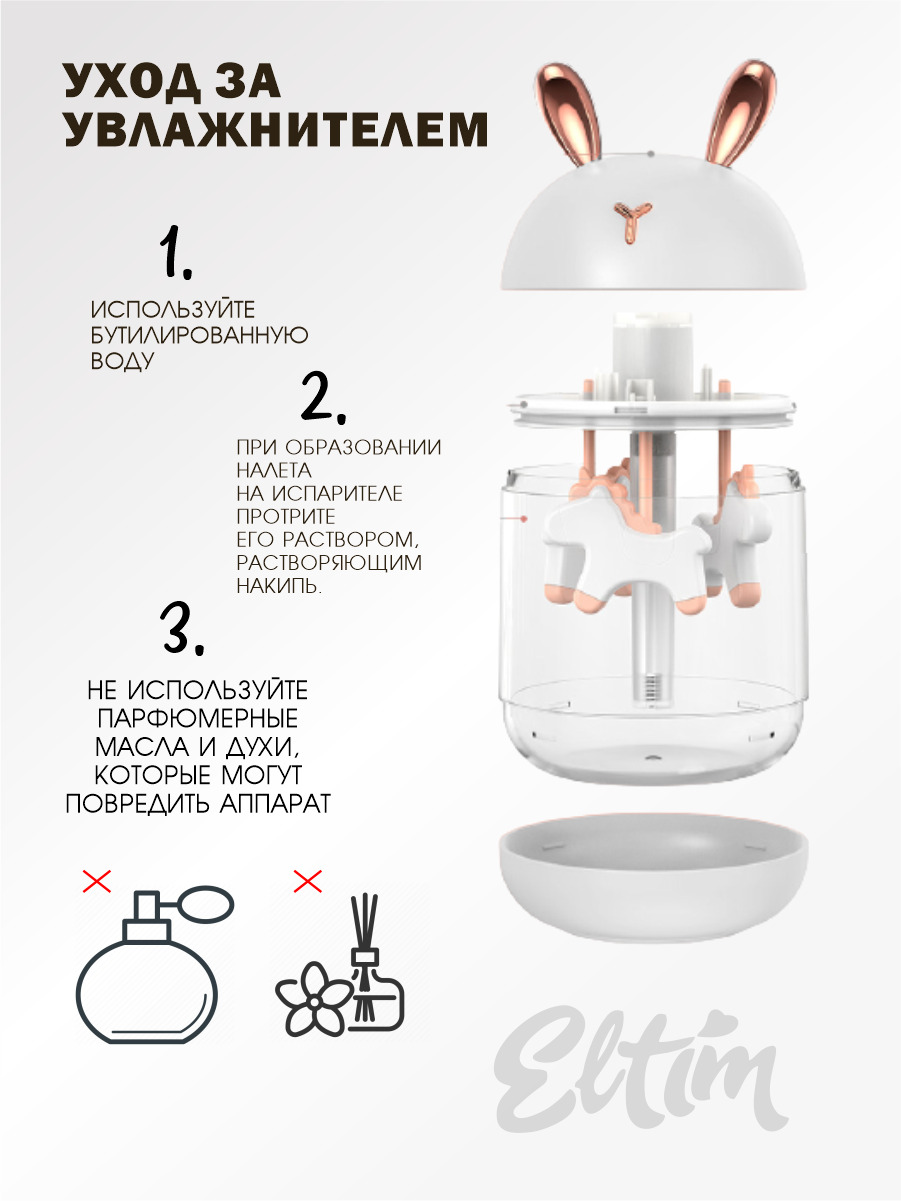 Увлажнитель воздуха ЭльТим Портативный "Зайка", белый