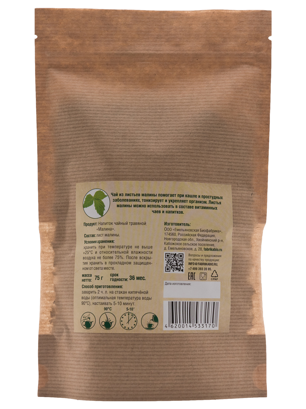 Напиток Чайный Травяной "Лист Малины" 75 гр.