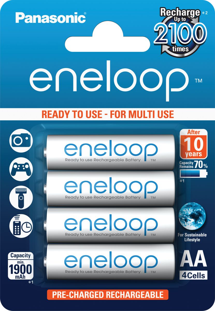 Аккумулятор Panasonic Eneloop R6, Ni-Mh, тип AA, 1900 mAh (BK-3MCCE/4BE), 1.2V, 4 шт