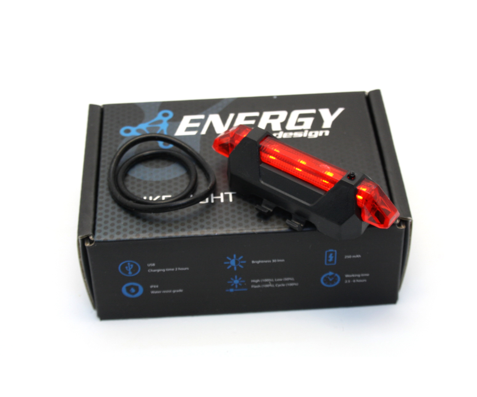 Фонарь велосипедный задний Energy MIST LED, 30 lumen, красный, 4 режима, USB, ABS корпус