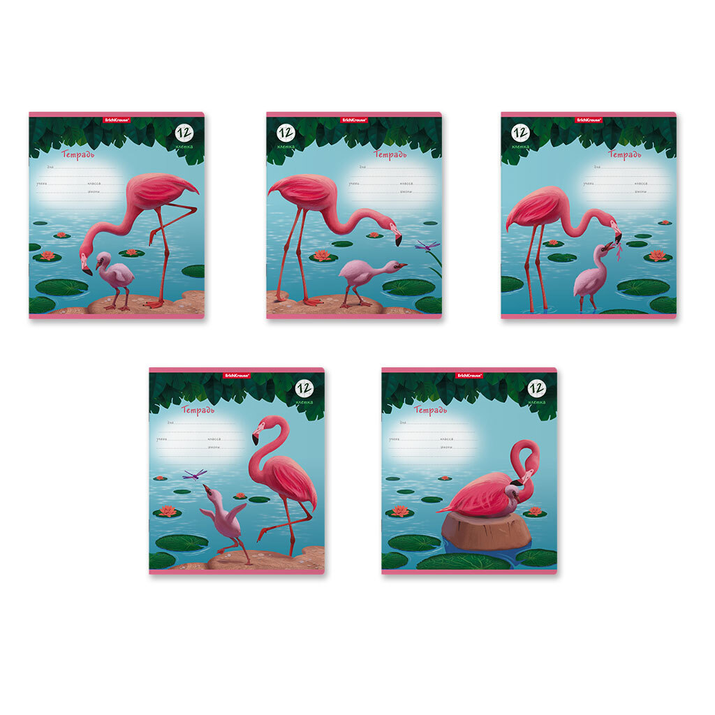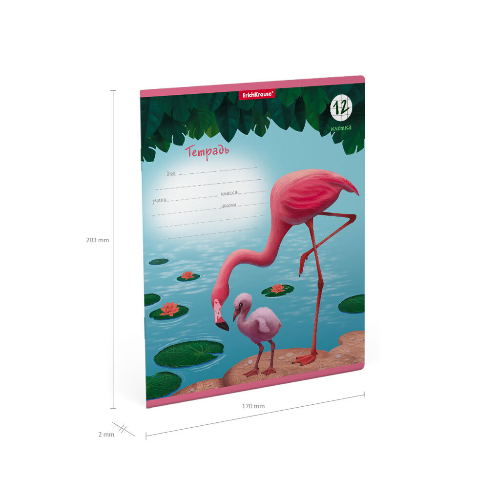 Тетрадь школьная ученическая ErichKrause Фламинго, 12 листов, клетка (в упаковке 10 шт.)