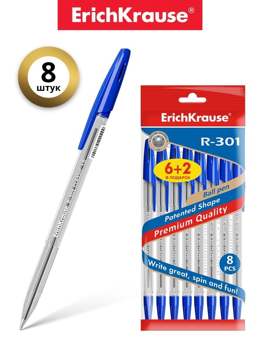 Ручка шариковая ErichKrause R-301 Classic Stick 1.0, цвет чернил синий (в пакете по 8 шт.)