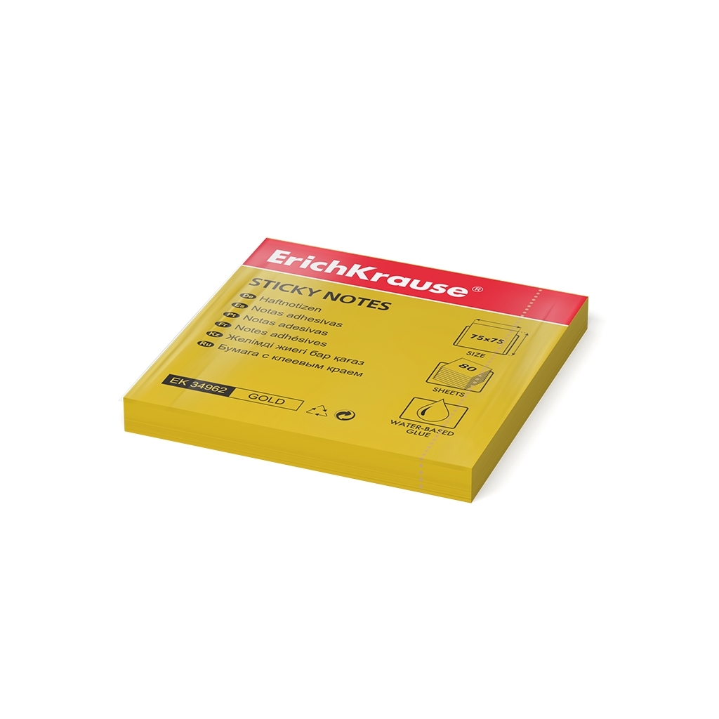 Бумага для заметок с клеевым краем ErichKrause Neon, 75х75 мм, 80 листов, золотой
