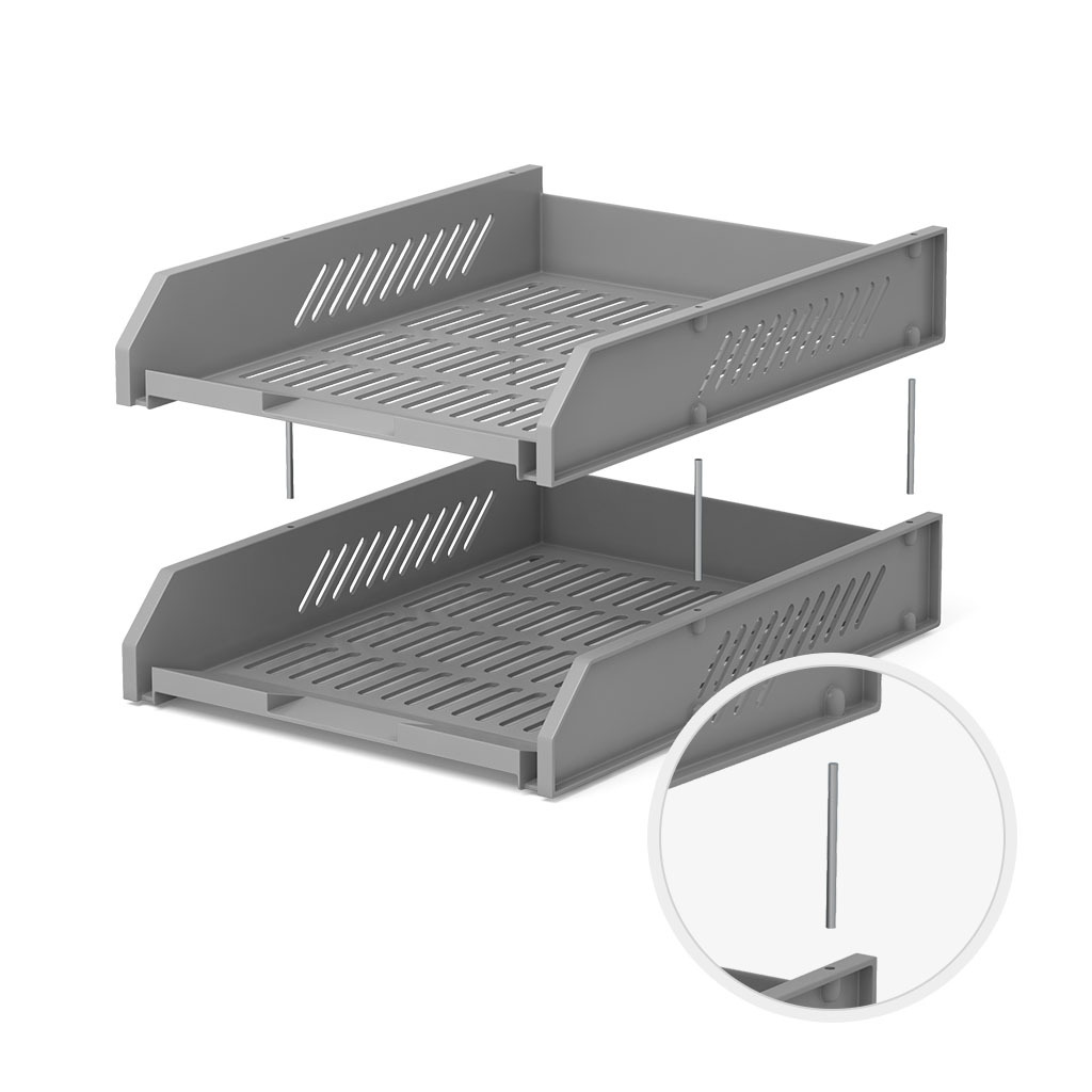 Набор пластиковых лотков для бумаг ErichKrause Classic, на металлических стержнях, серый, 2 шт