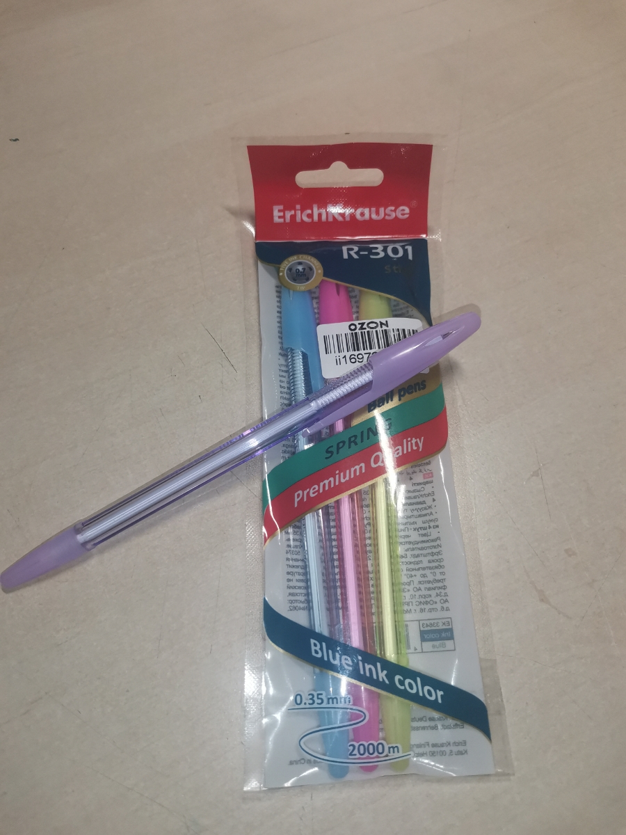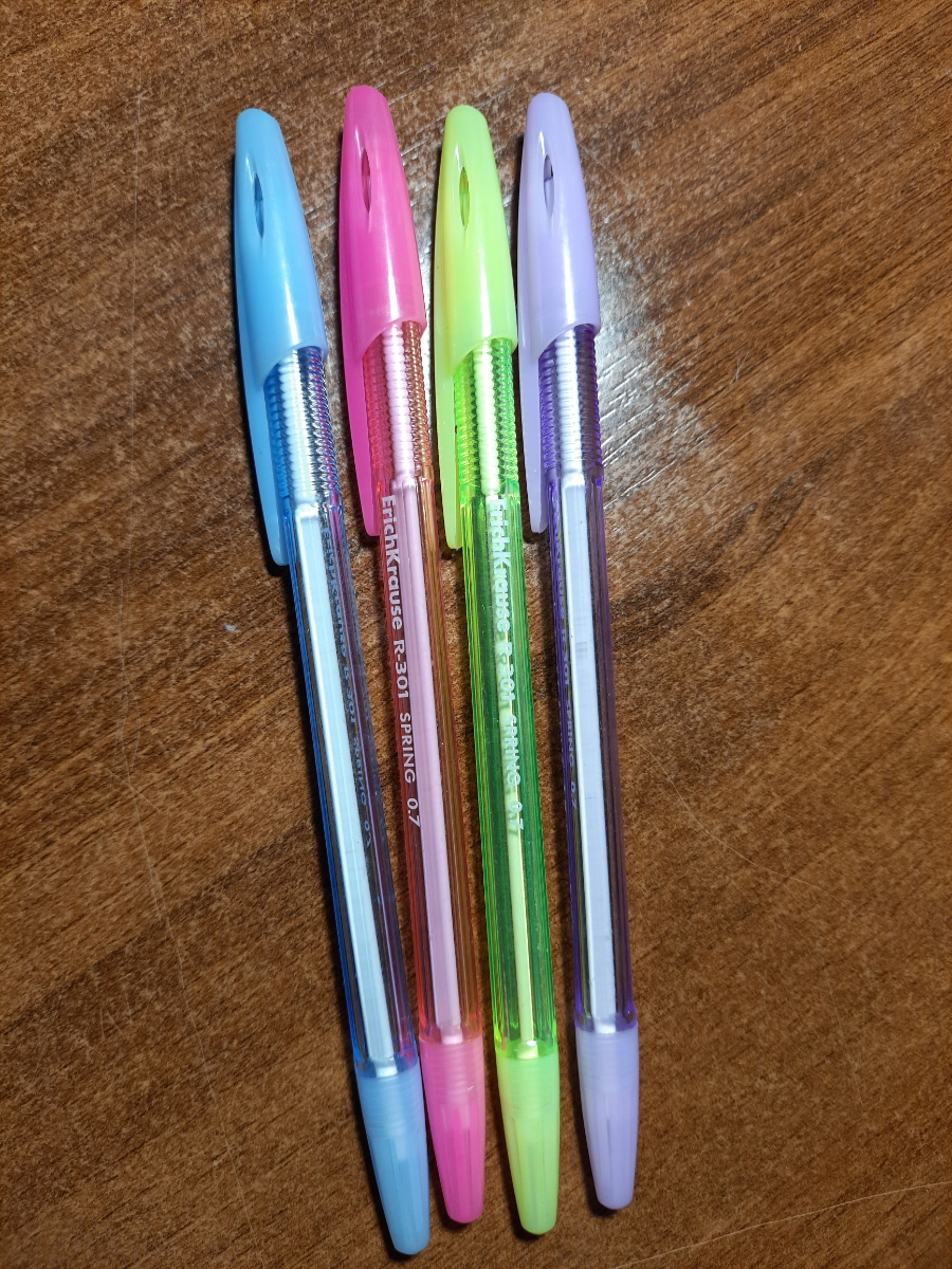 Ручка шариковая ErichKrause R-301 Spring Stick 0.7, цвет чернил синий, 4 шт