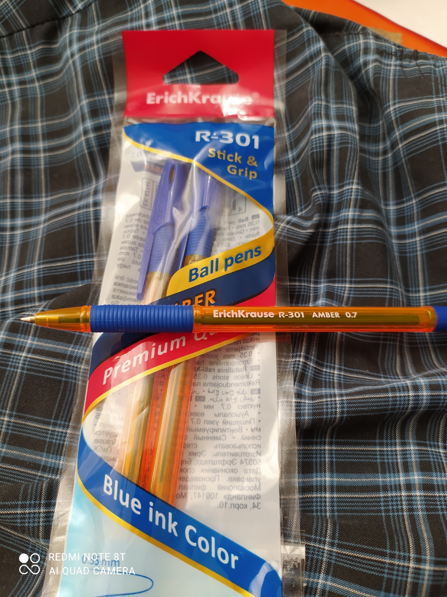 Ручка шариковая ErichKrause R-301 Amber Stick&Grip 0.7, цвет чернил синий (в пакете по 3 шт.)