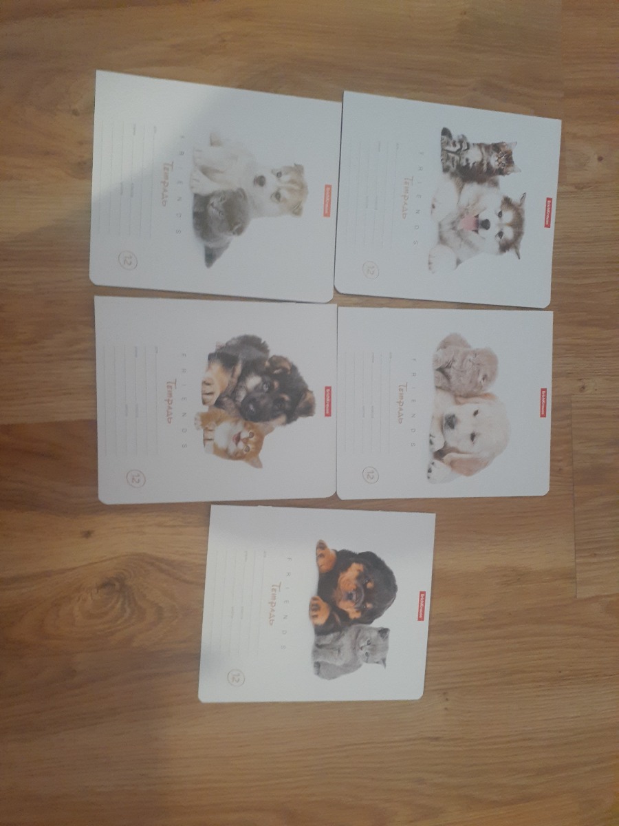 "Erich Krause". Тетрадь школьная "Друзья", 12 листов в клетку. 5 штук 5 дизайнов. 42545/5.
