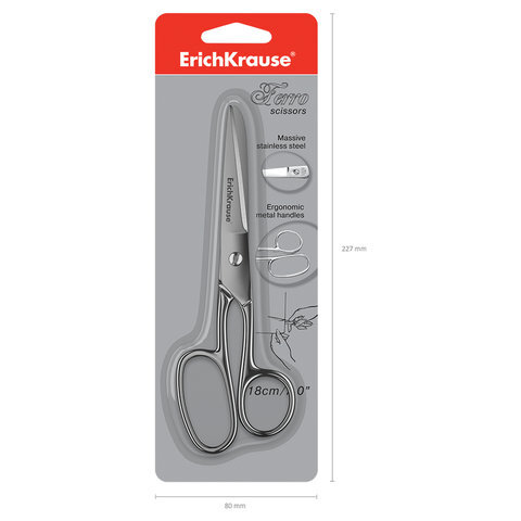 Ножницы цельнометаллические Erich Krause Ferro 180мм, асимметричные ручки, остроконечные (14852)