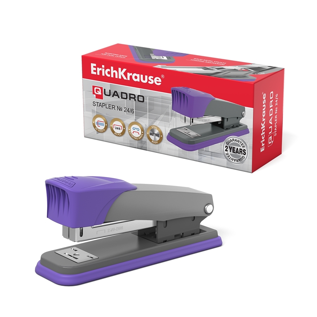 Степлер №24/6 ErichKrause Quadro Half-strip до 30 листов, серо-фиолетовый (в коробке по 1 шт.)