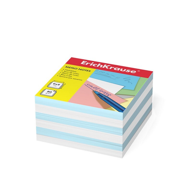 Блок для записей EK б/склейки, 9*9*5 см, голубой, 80 г/м2