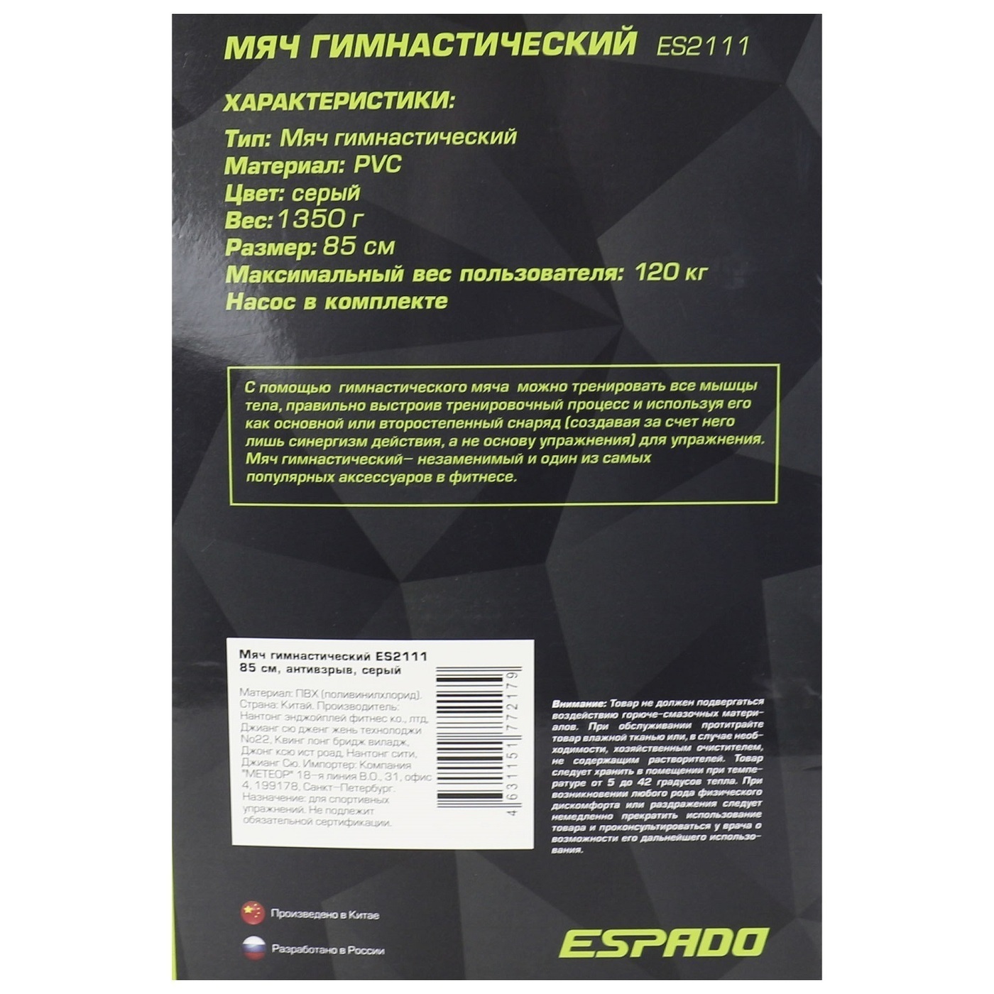 Мяч гимнастический ESPADO 85см, антивзрыв, серый ES2111 1/10