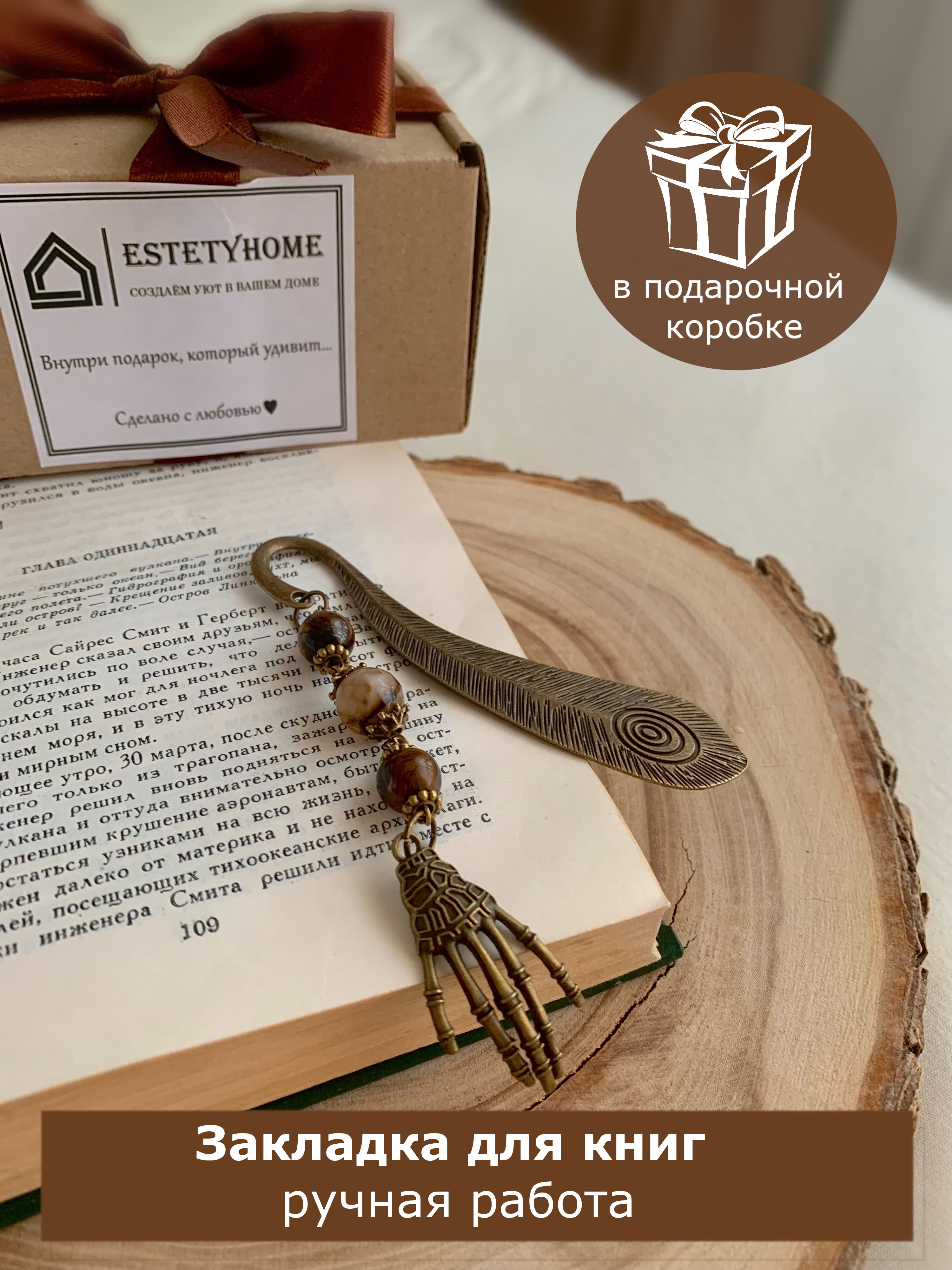Закладка для книг ESTETYHOME / Рука / перо / металл / с камнями / подарочная упаковка