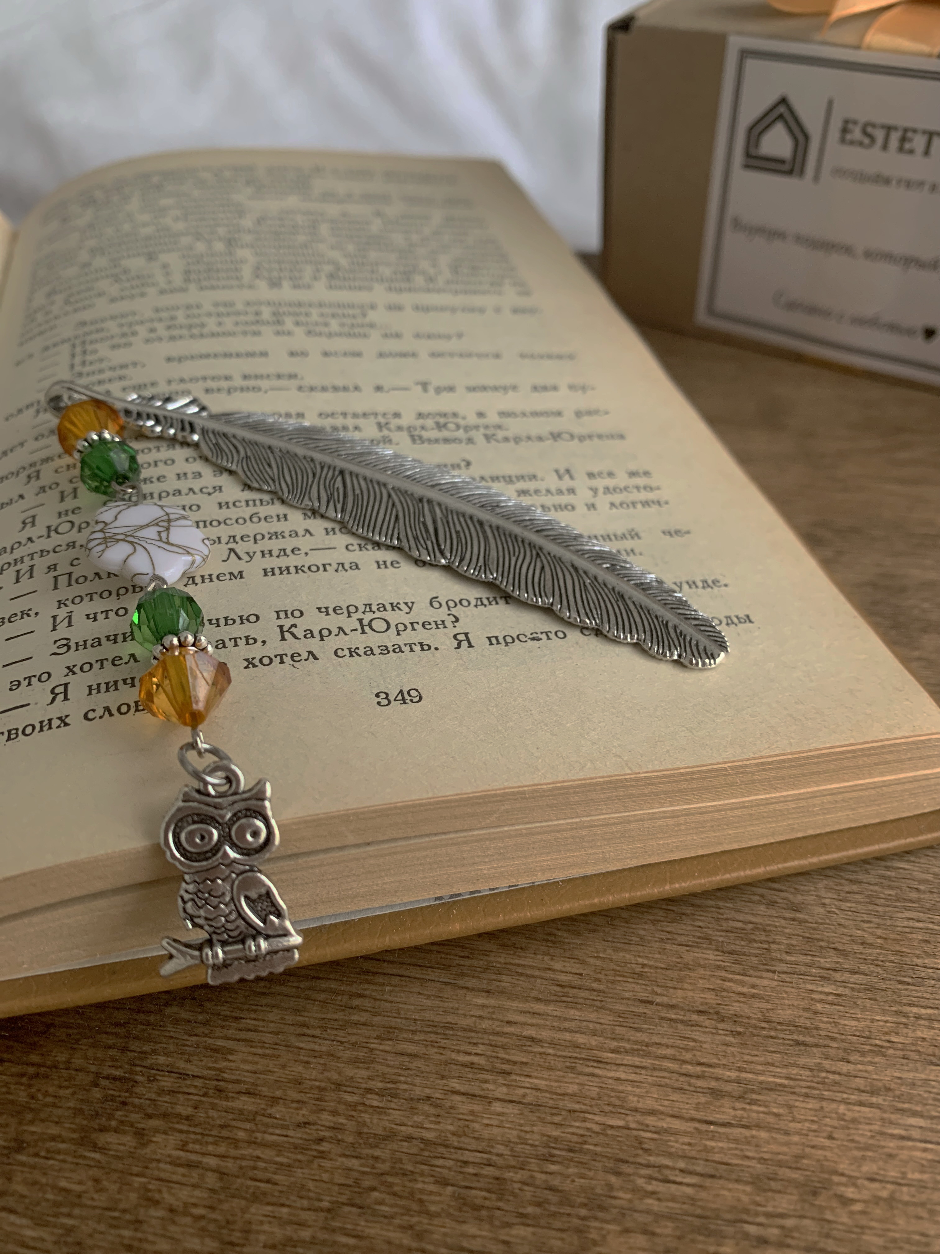 Закладка для книг ESTETYHOME / СОВА / перо / металл / с камнями / подарочная упаковка
