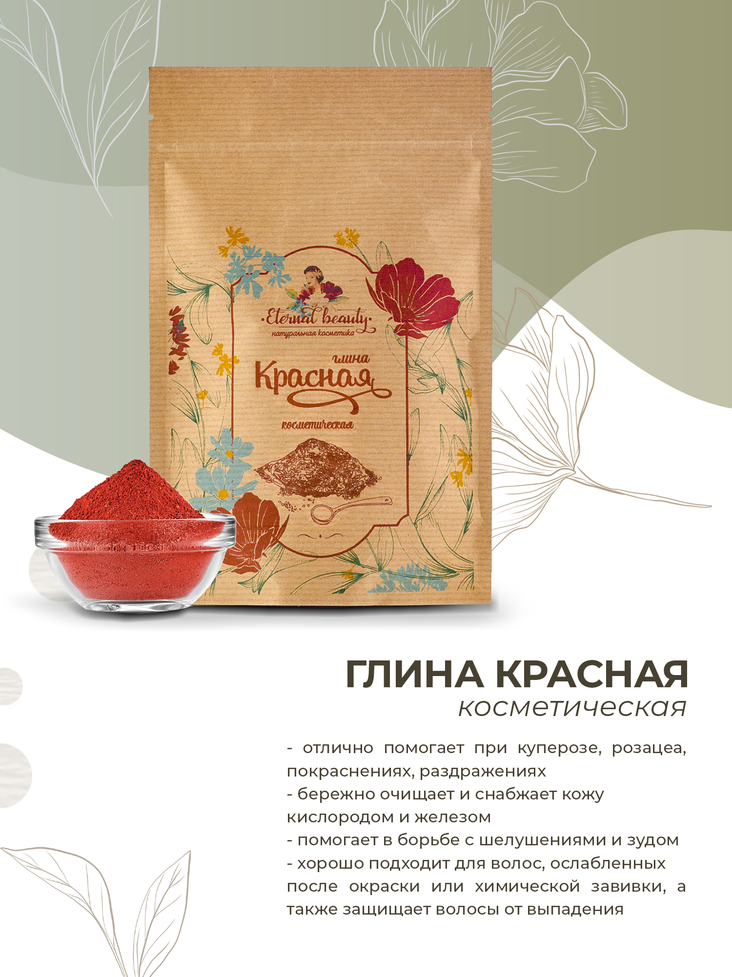 Eternal beauty Глина красная косметическая для лица, тела, волос, шампуней, обертываний, ванн 200 гр.