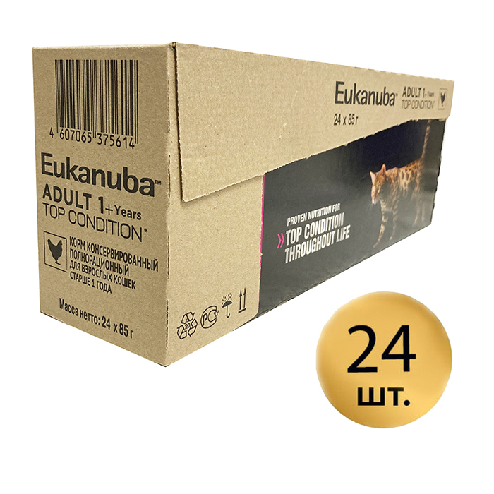 Корм для кошек Eukanuba Adult Top Condition влажный рацион из курицы в соусе, 85гр. (24шт.)