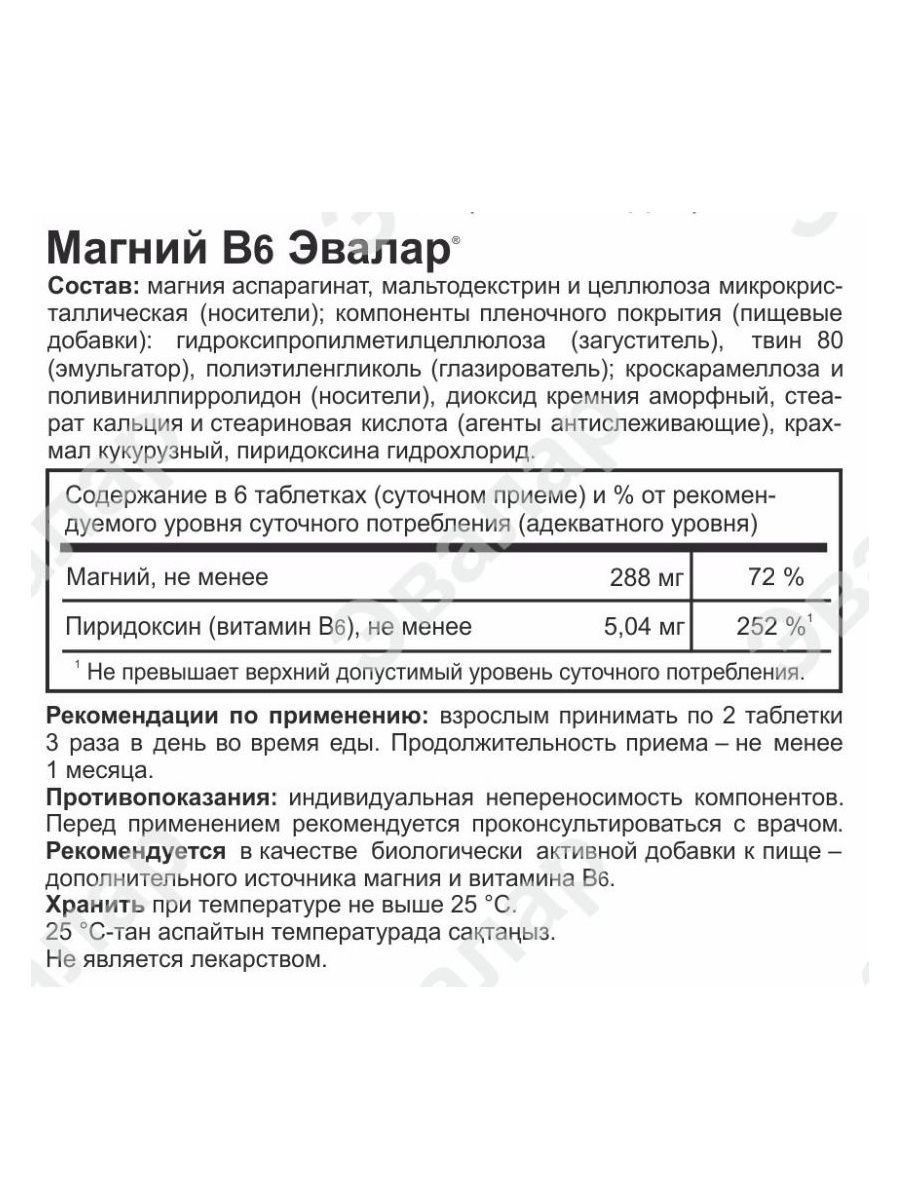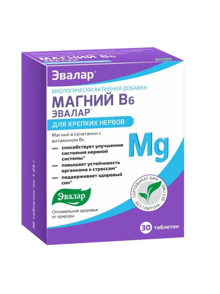 Эвалар Магний В6, 30 таблеток массой 1,25 г