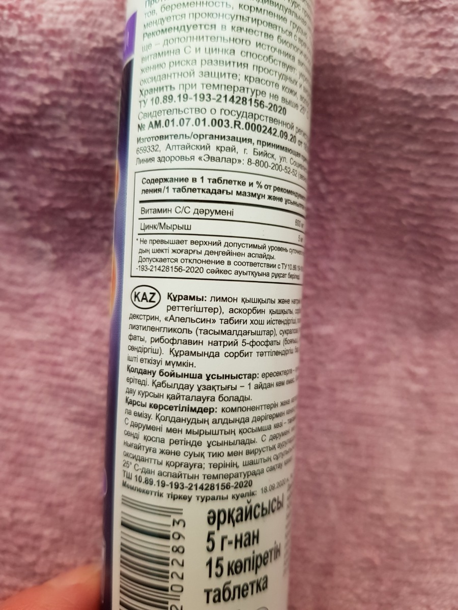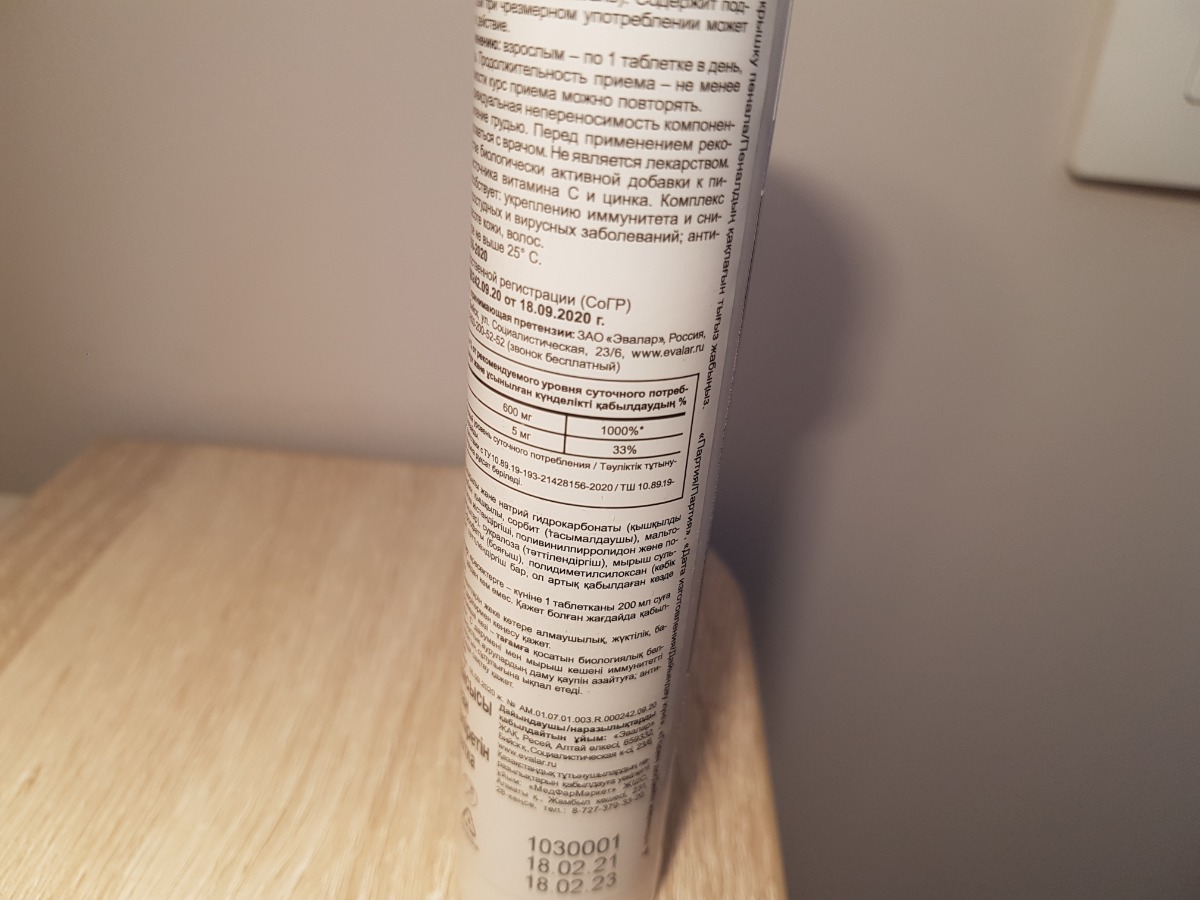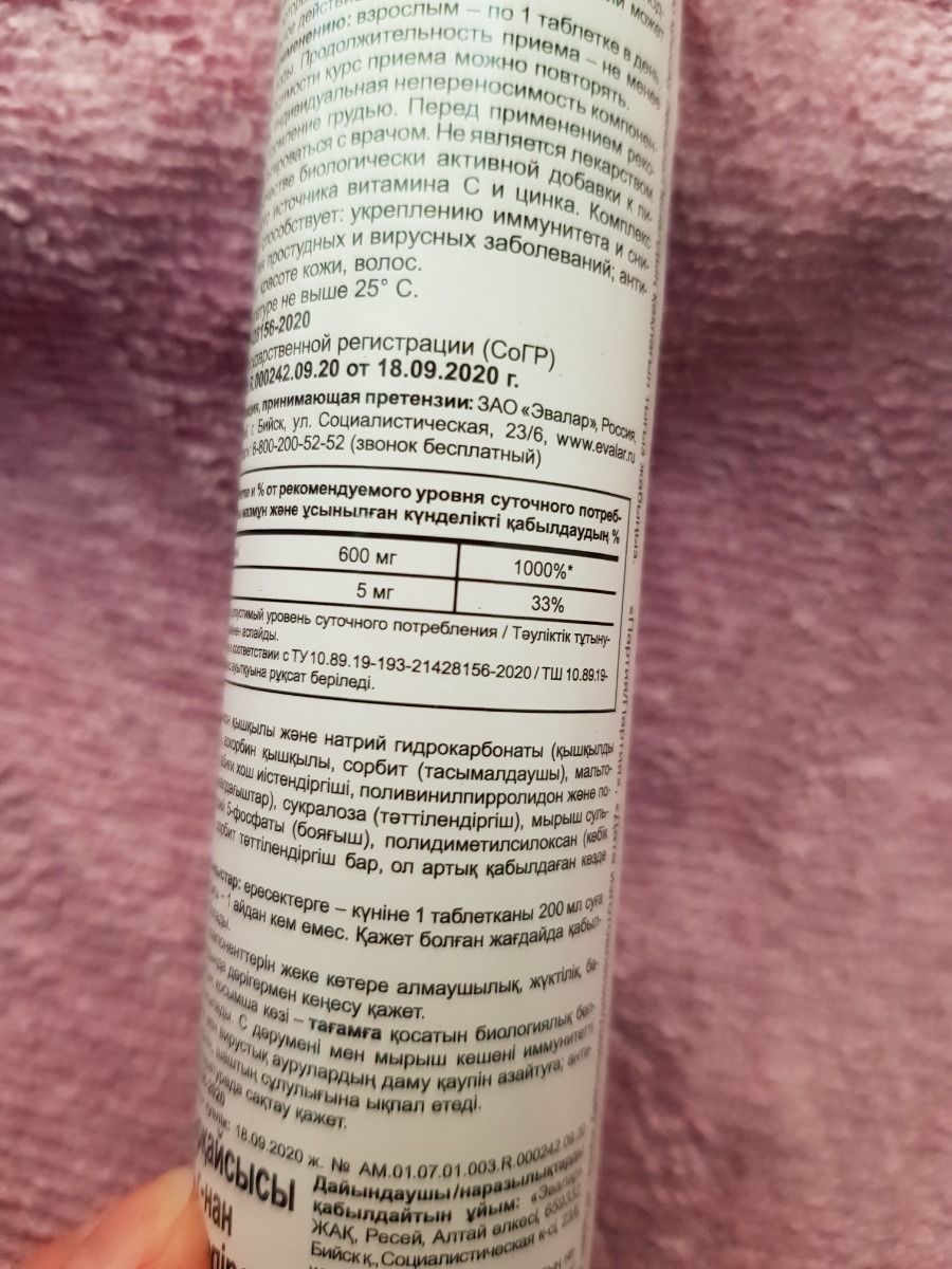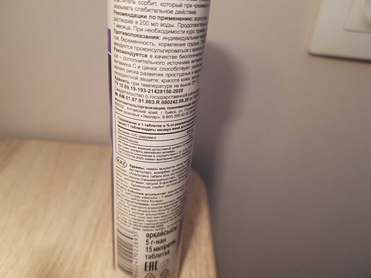 Цинк+Витамин С Эвалар, №15 шипучие таблетки