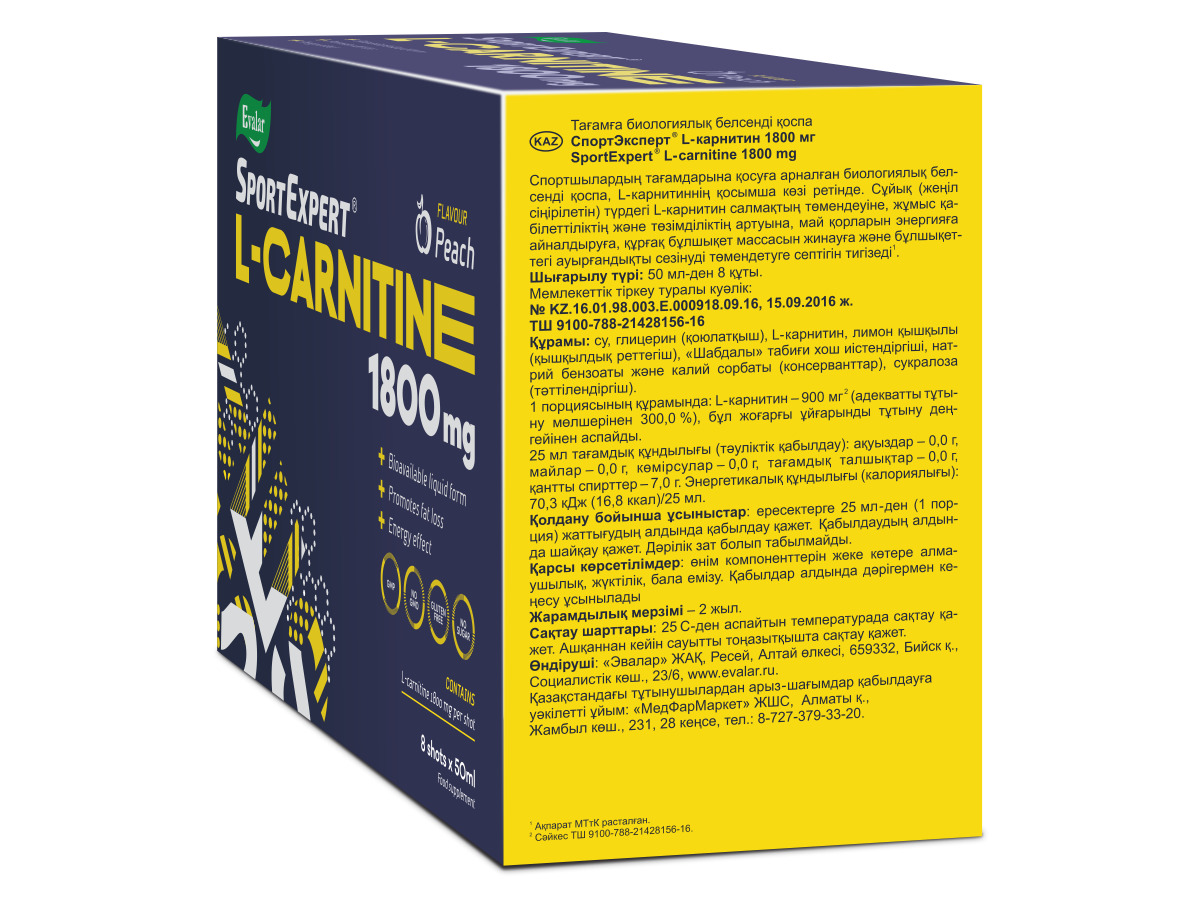 СпортЭксперт L-карнитин 1800 мг, №8 х 50 мл сжигатель жира (L-carnitine SportExpert Эвалар)