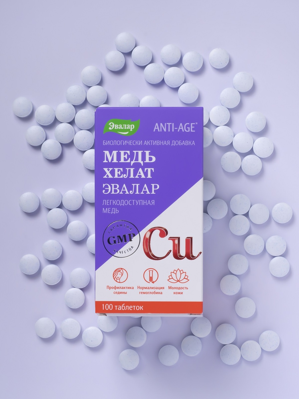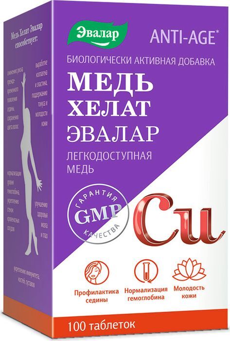 Медь Хелат, 100 табл. Профилактика седины, молодость кожи, нормализация гемоглобина