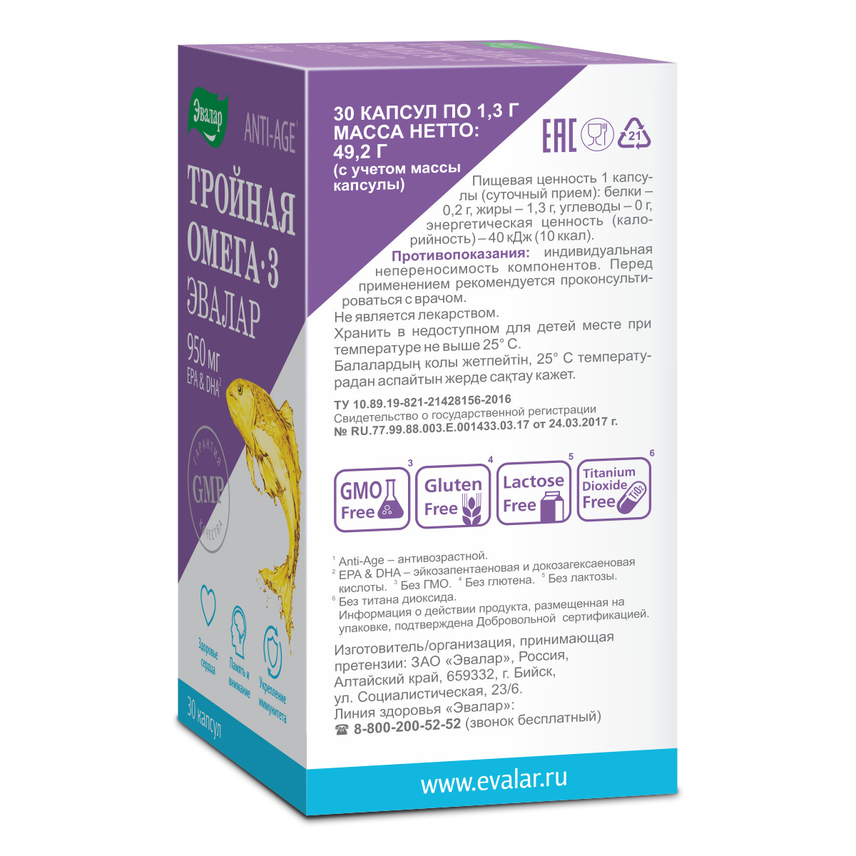 Тройная Омега 3 950 мг, капсулы № 30 по 1,3 г. Уцененный товар