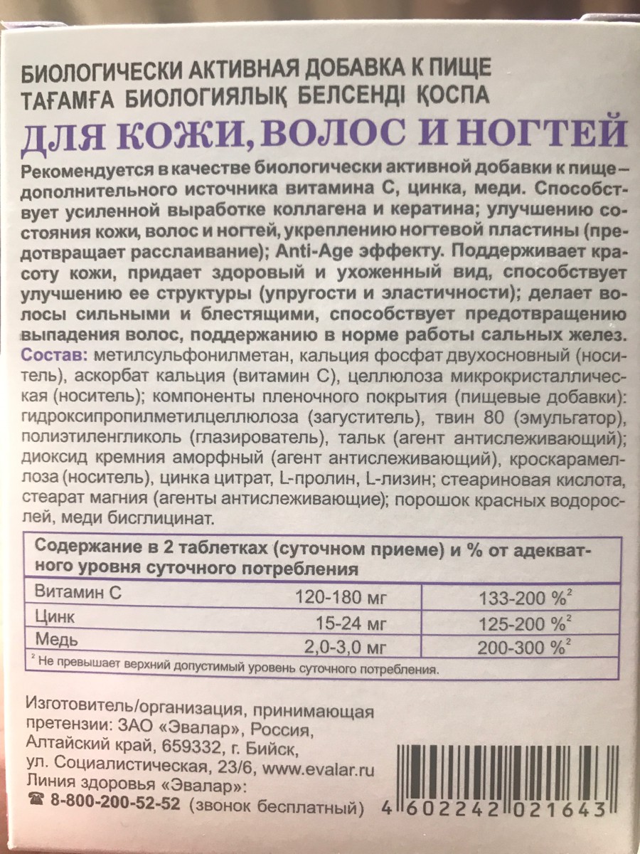 Для кожи, волос и ногтей Эвалар, табл. №60