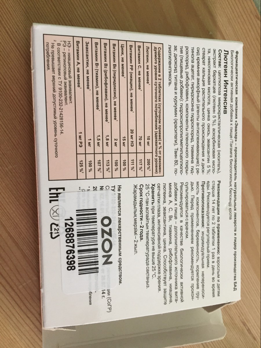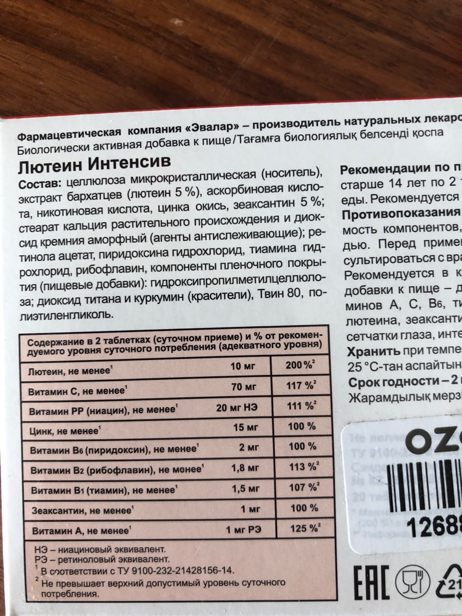 Лютеин Интенсив таб. 500мг №20 (БАД)