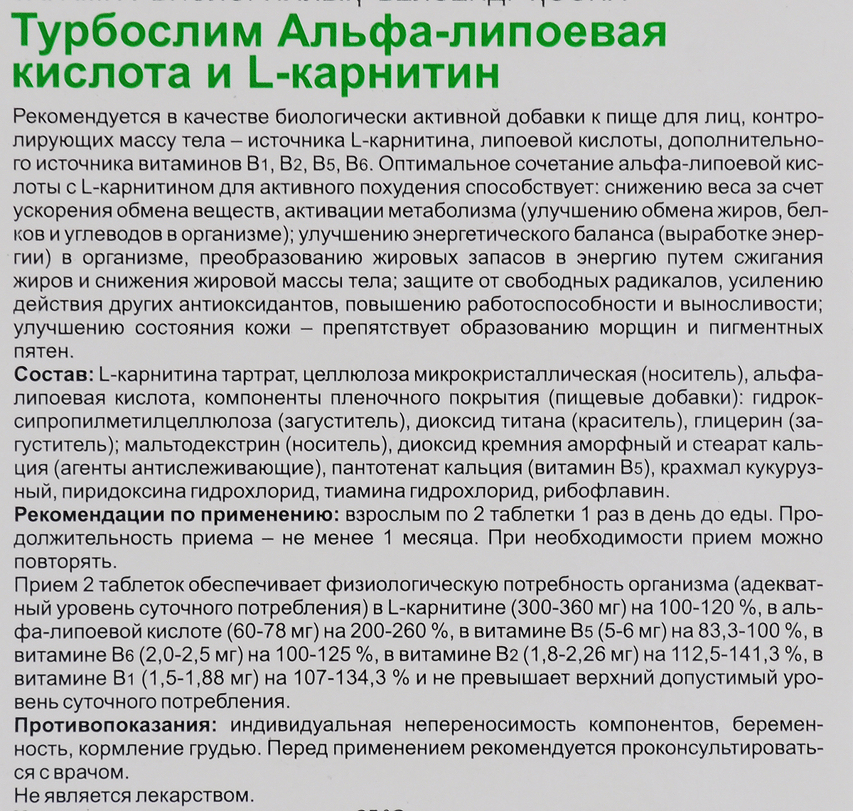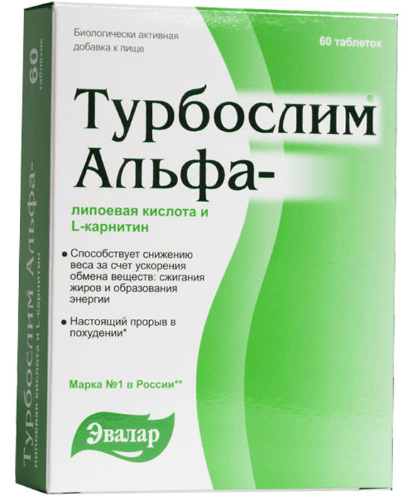 Турбослим Альфа-липоевая кислота и L-карнитин, таб. №60 по 0,55 г