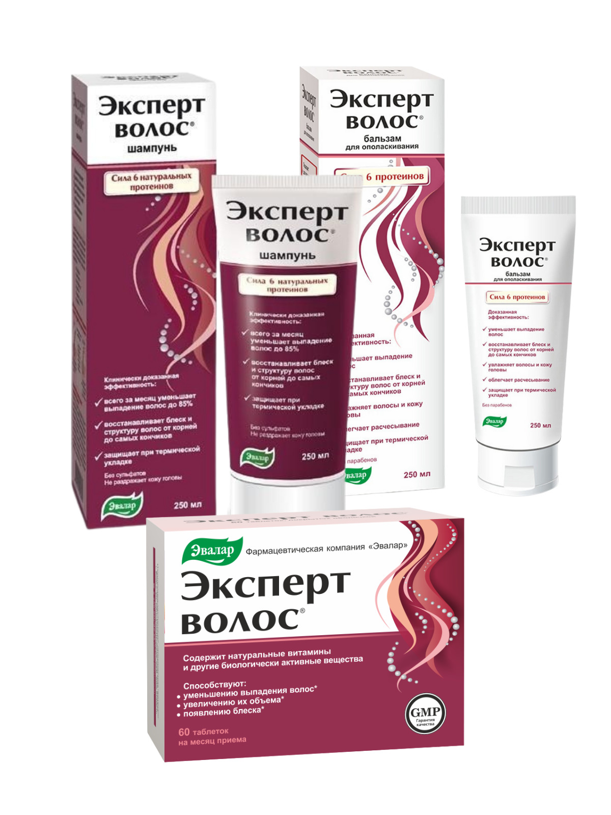 Набор "Эксперт волос": протеиновый бальзам 150 мл + протеиновый шампунь 250 мл + витамины для роста и восстановления волос