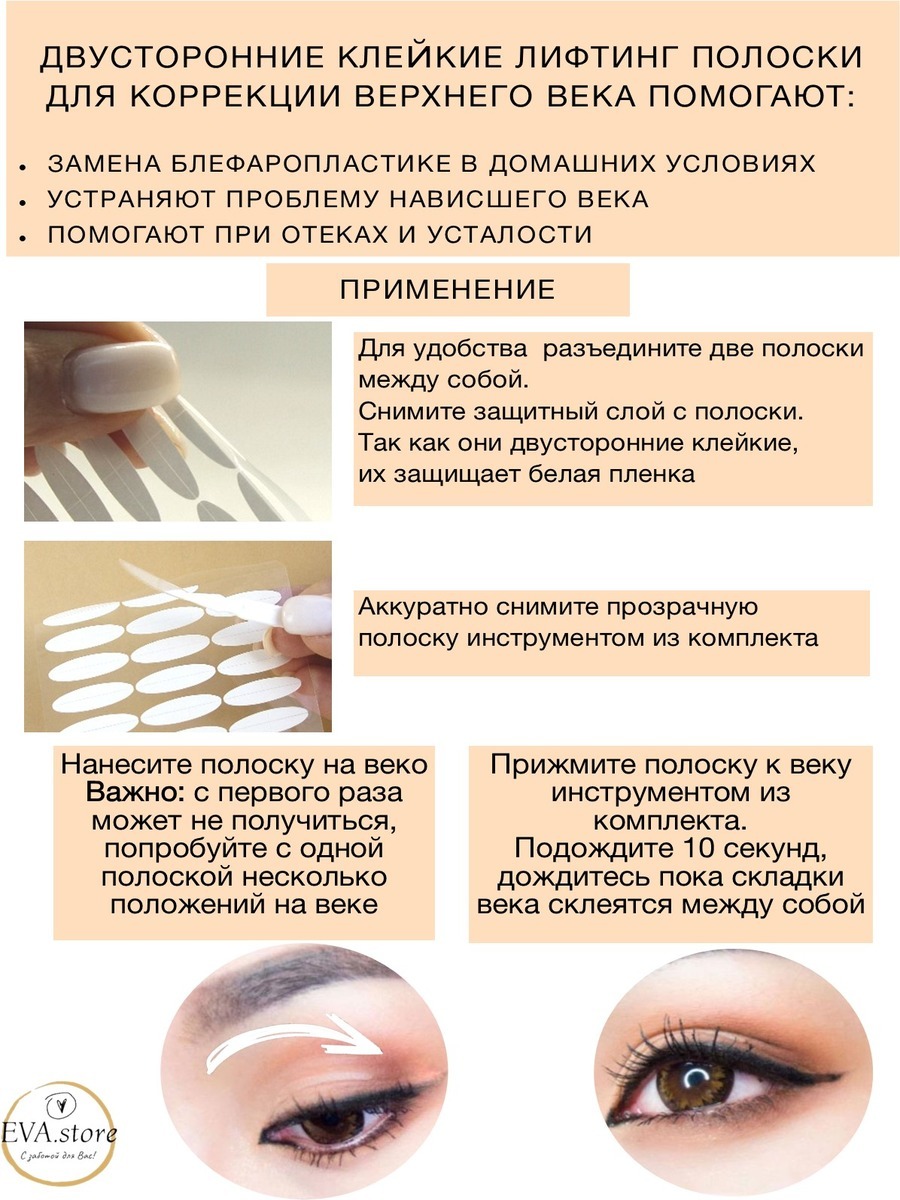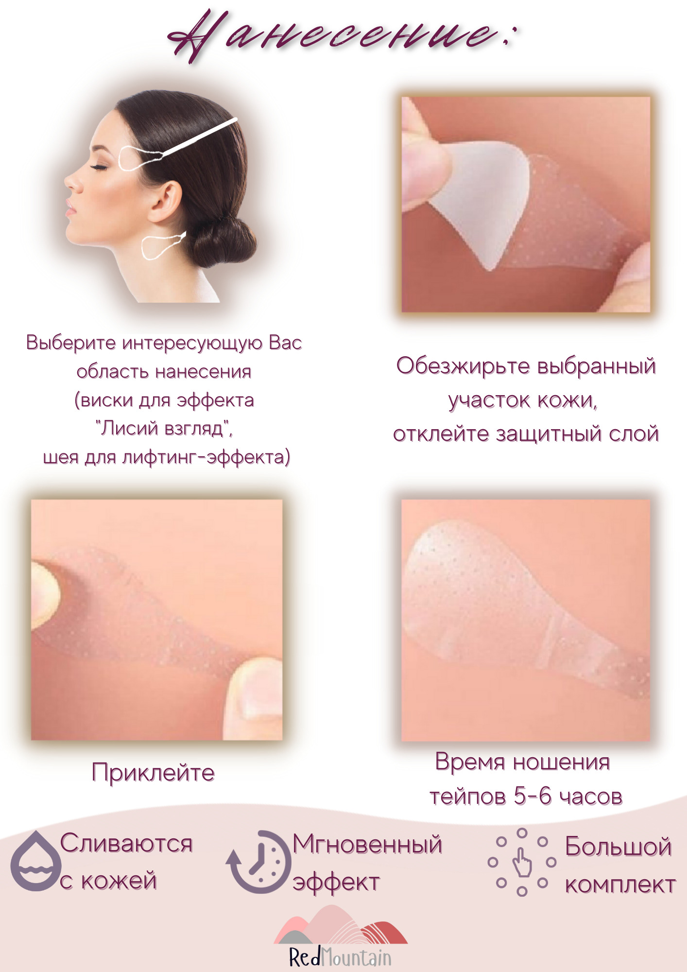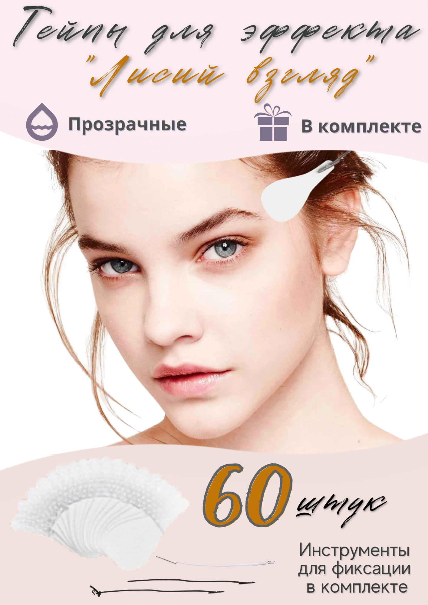 Лифтинг полоски/ лисий взгляд / лифтинг эффект / 60 тейпов для подтяжки лица / косметический тейп