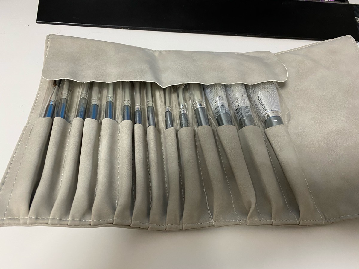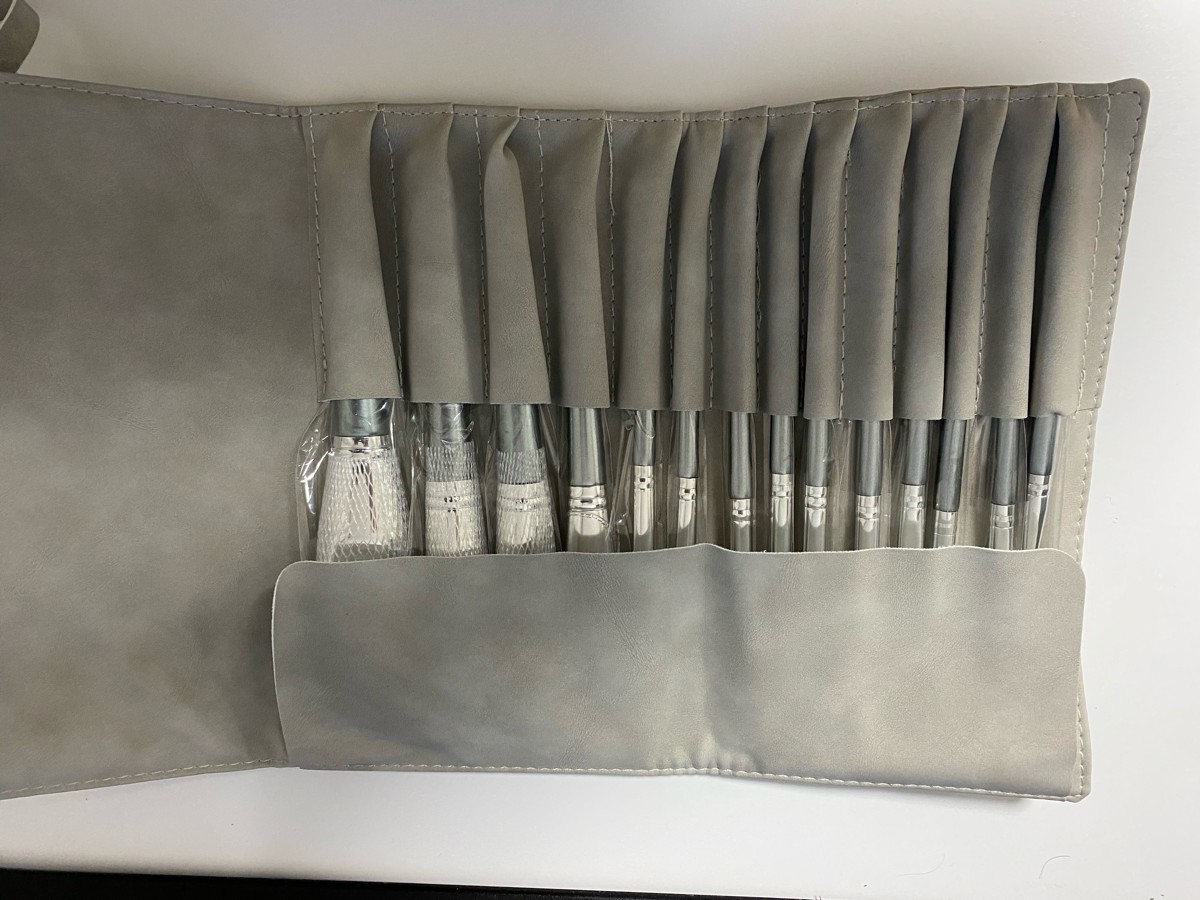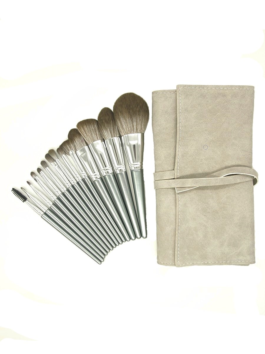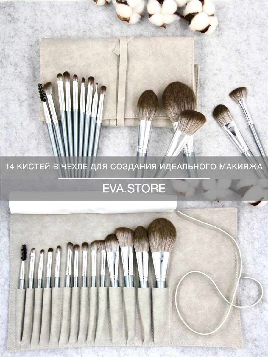 Eva.store Набор кистей для макияжа в чехле, Серый меланж, 14 шт