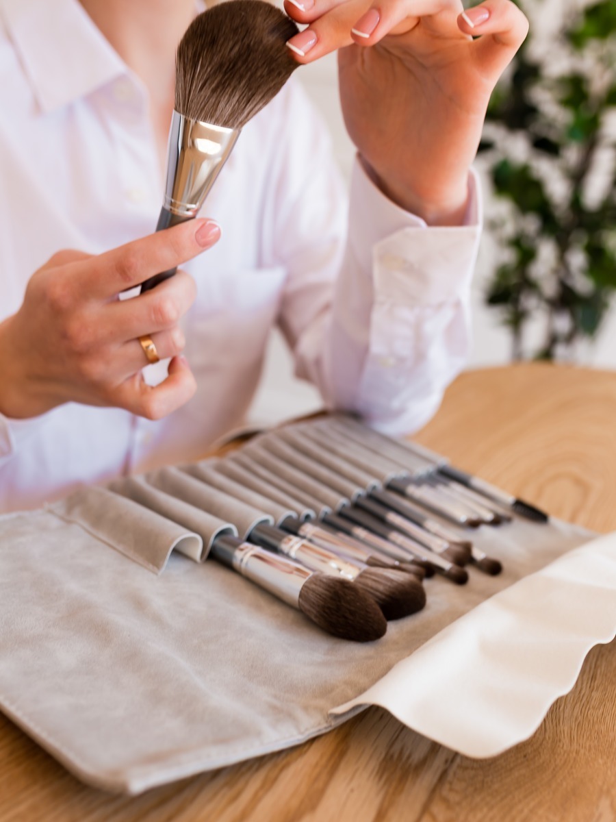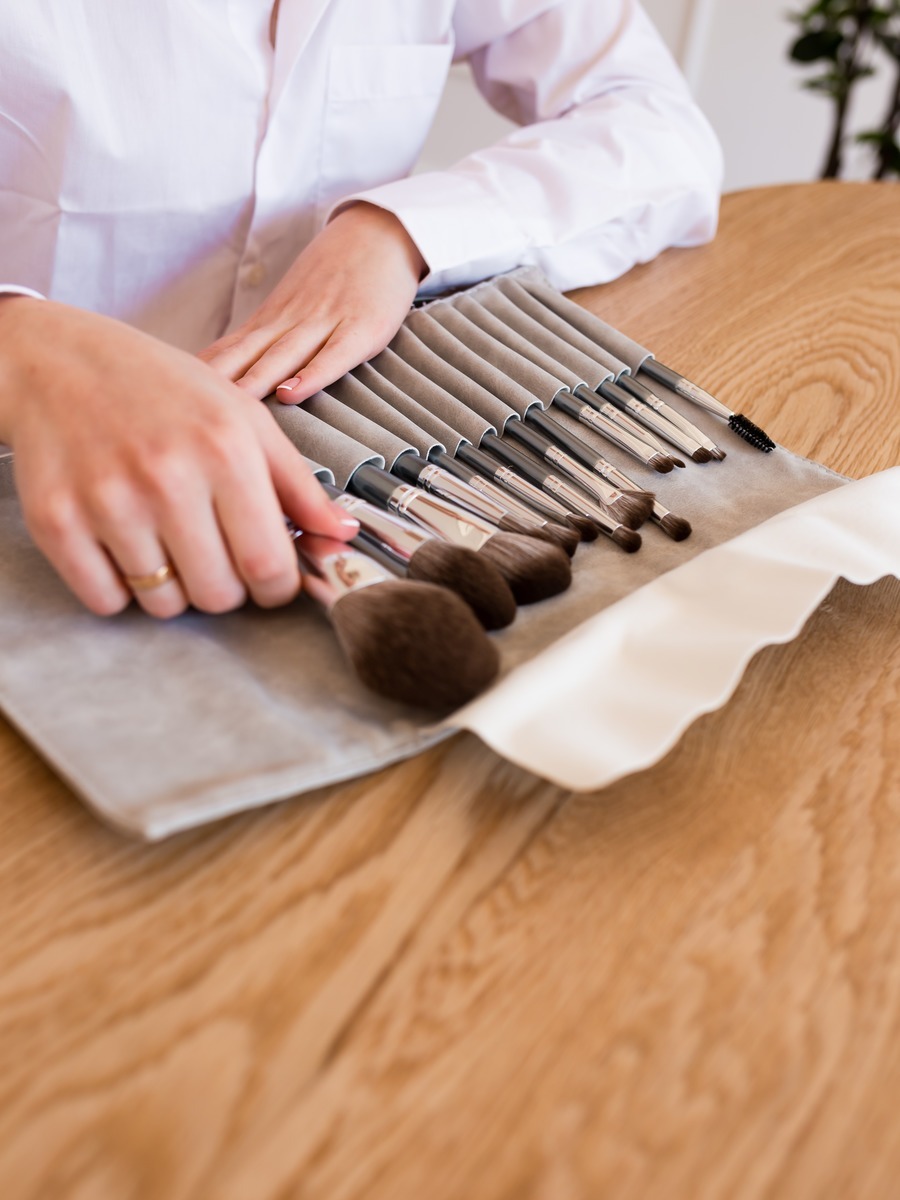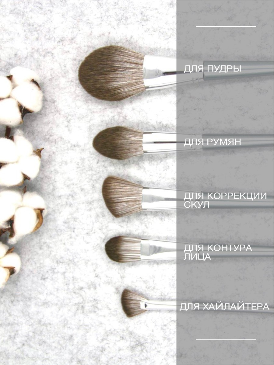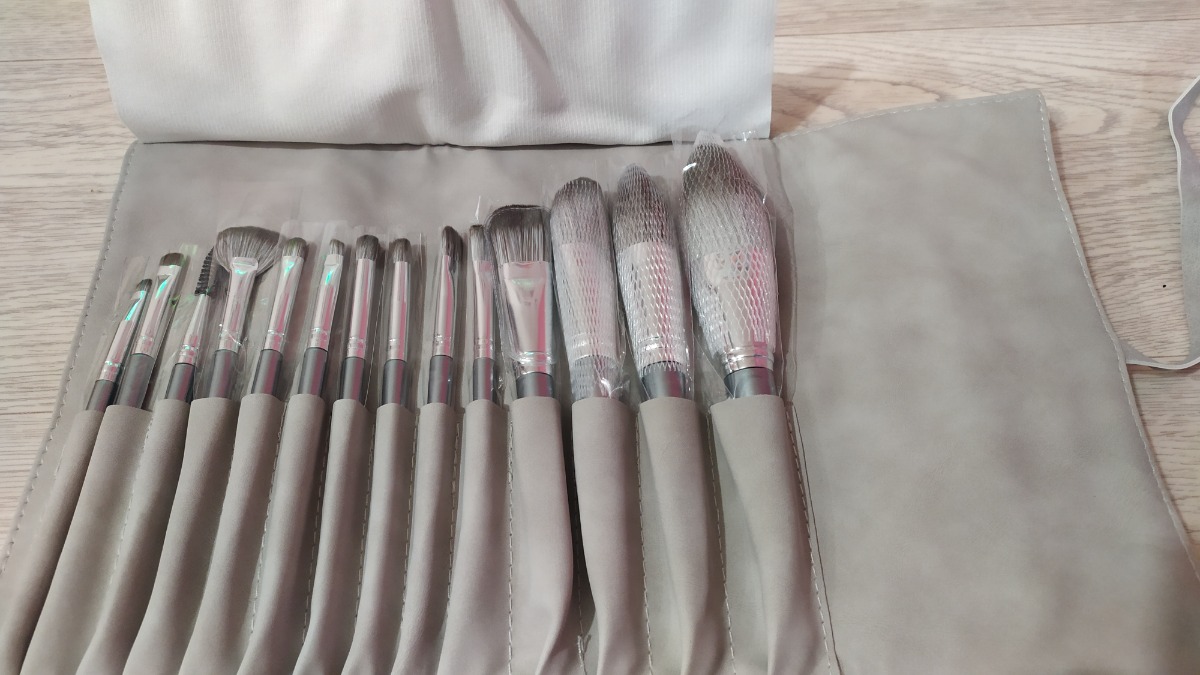 Eva.store Набор кистей для макияжа в чехле, Серый меланж, 14 шт