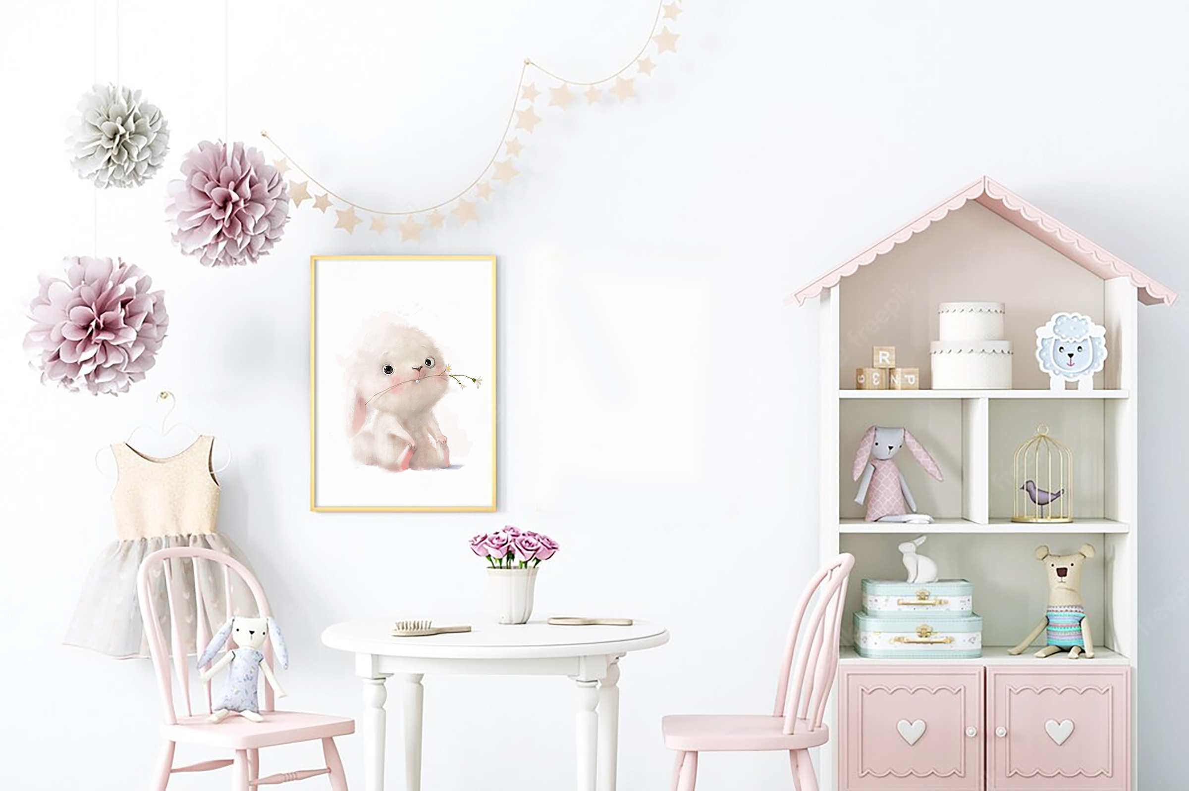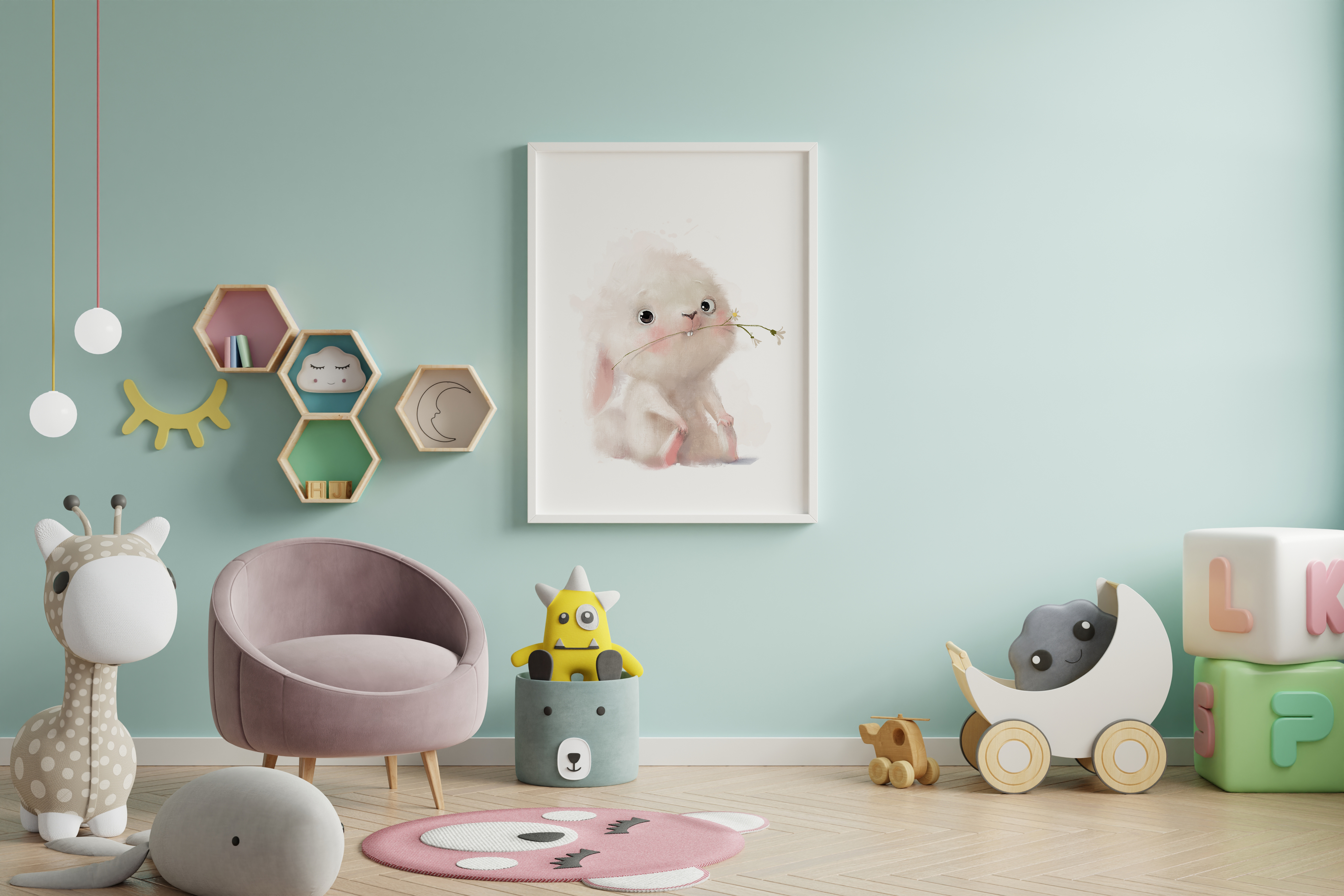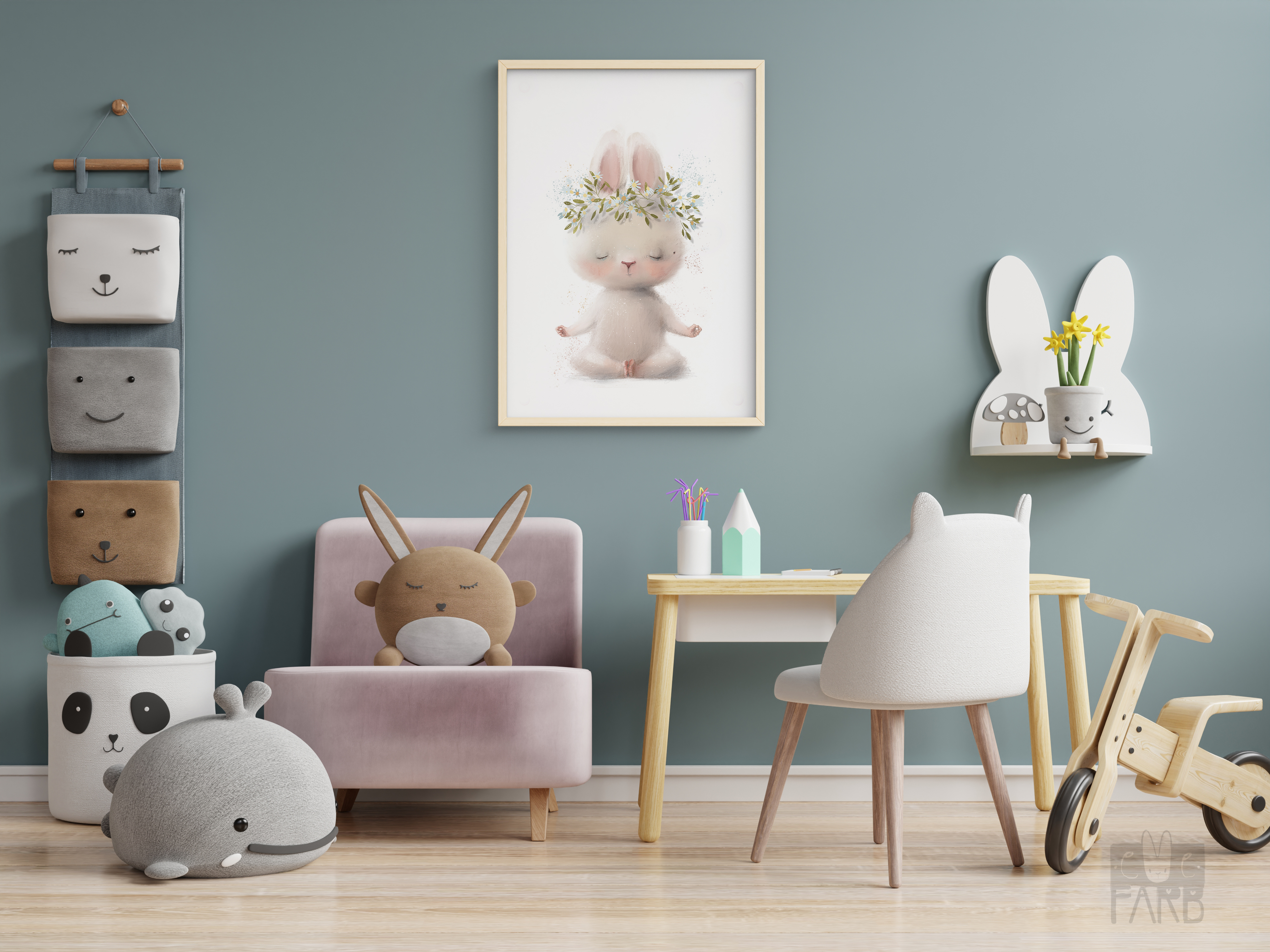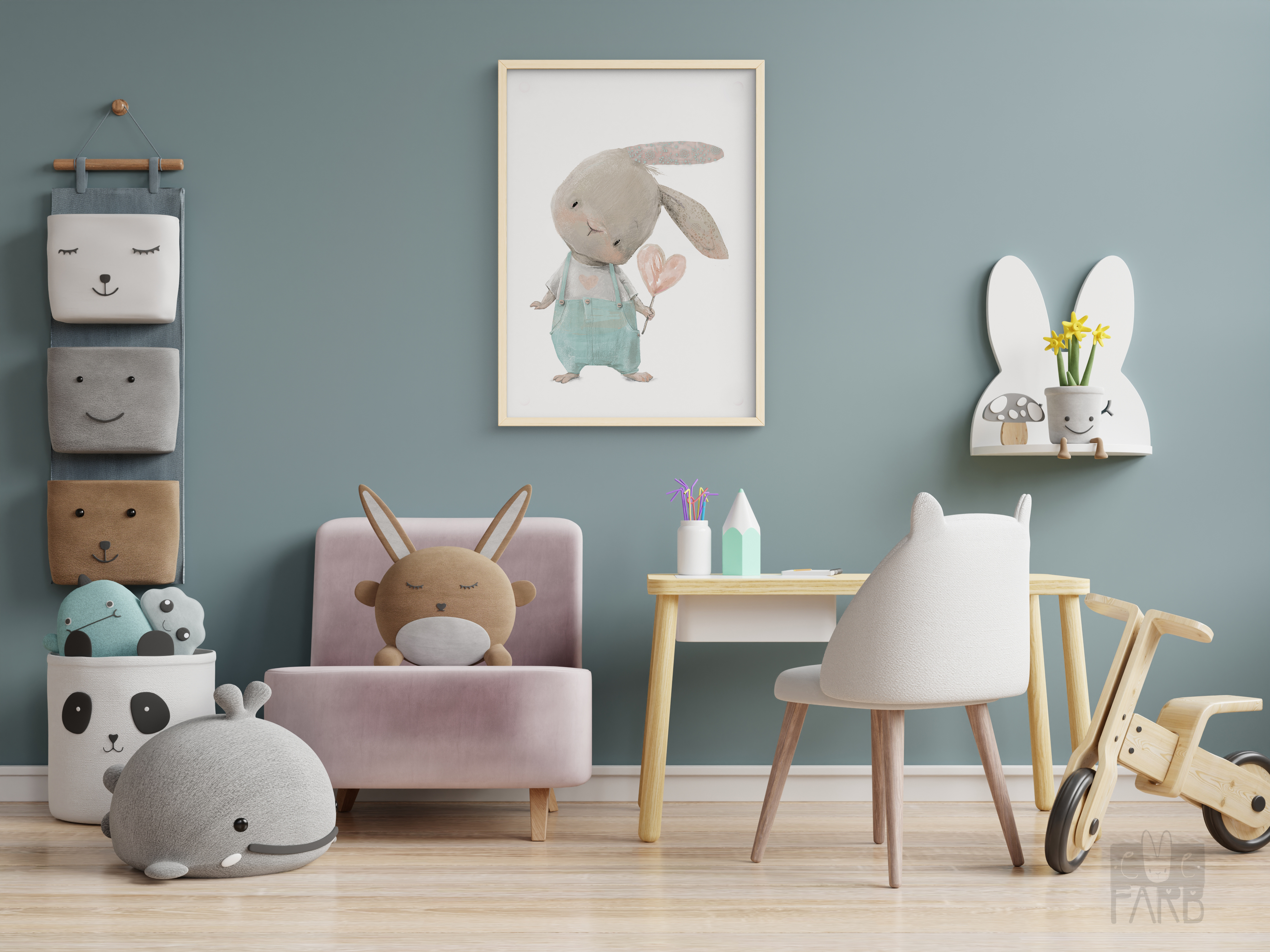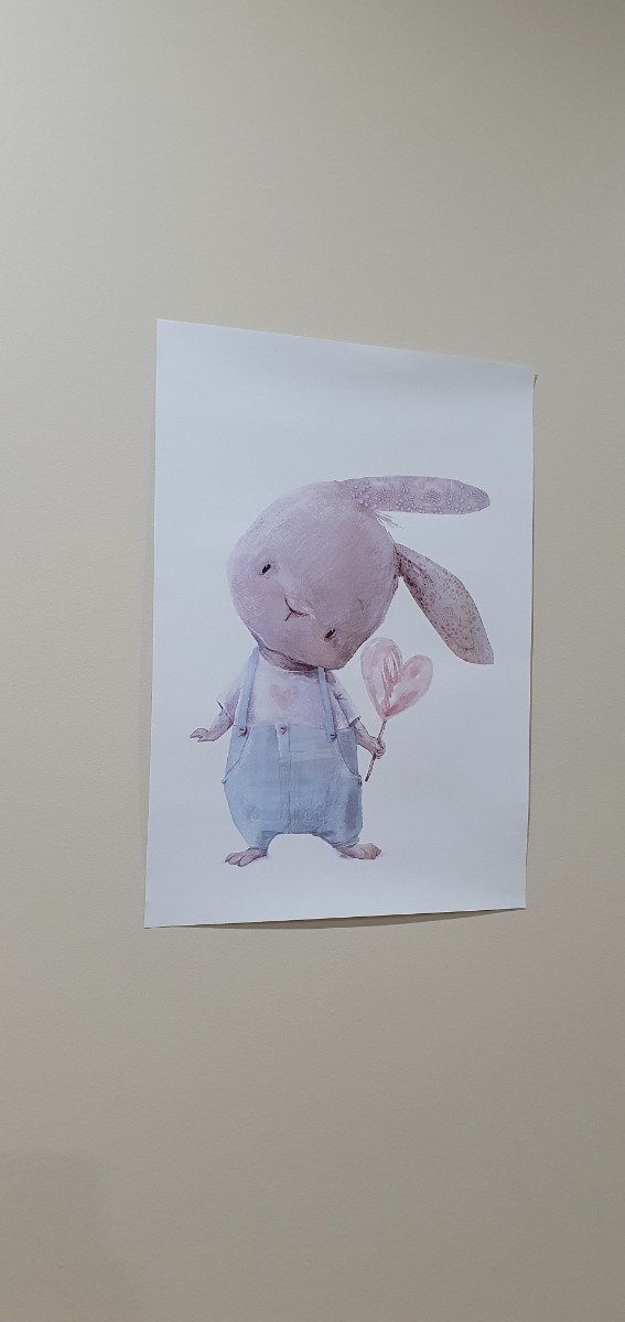 Постер А3 в детскую "Заяц с цветком"