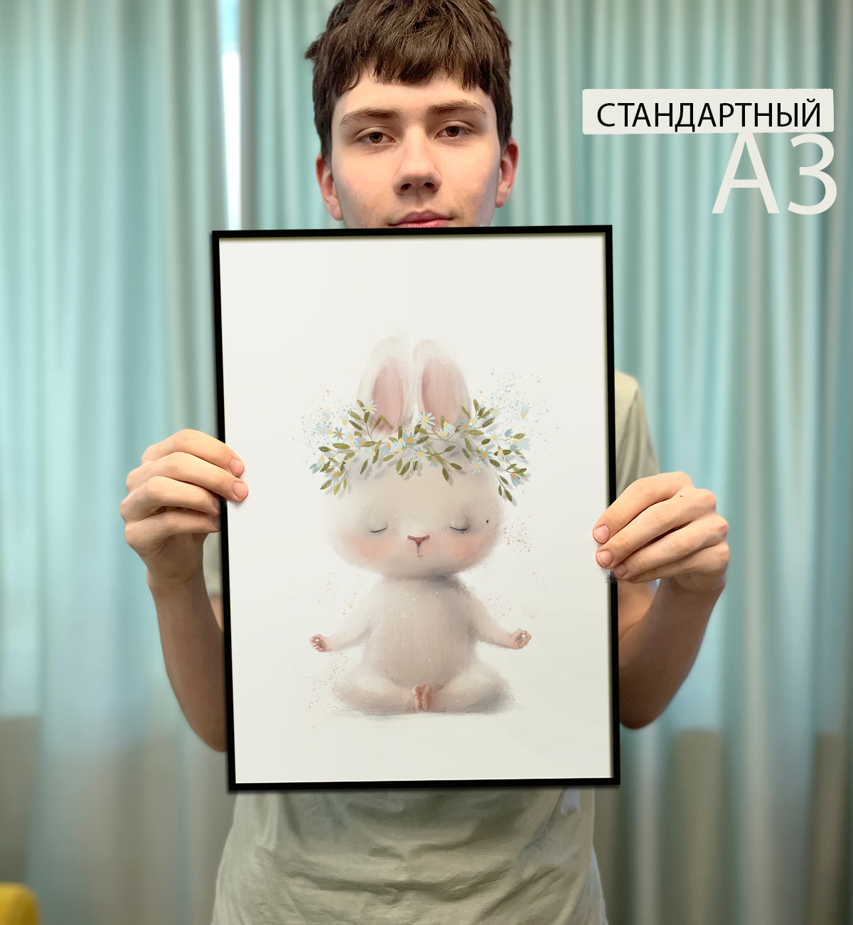 ПОСТЕР А3 ЗАЯЦ В ПОЗЕ ЛОТОСА