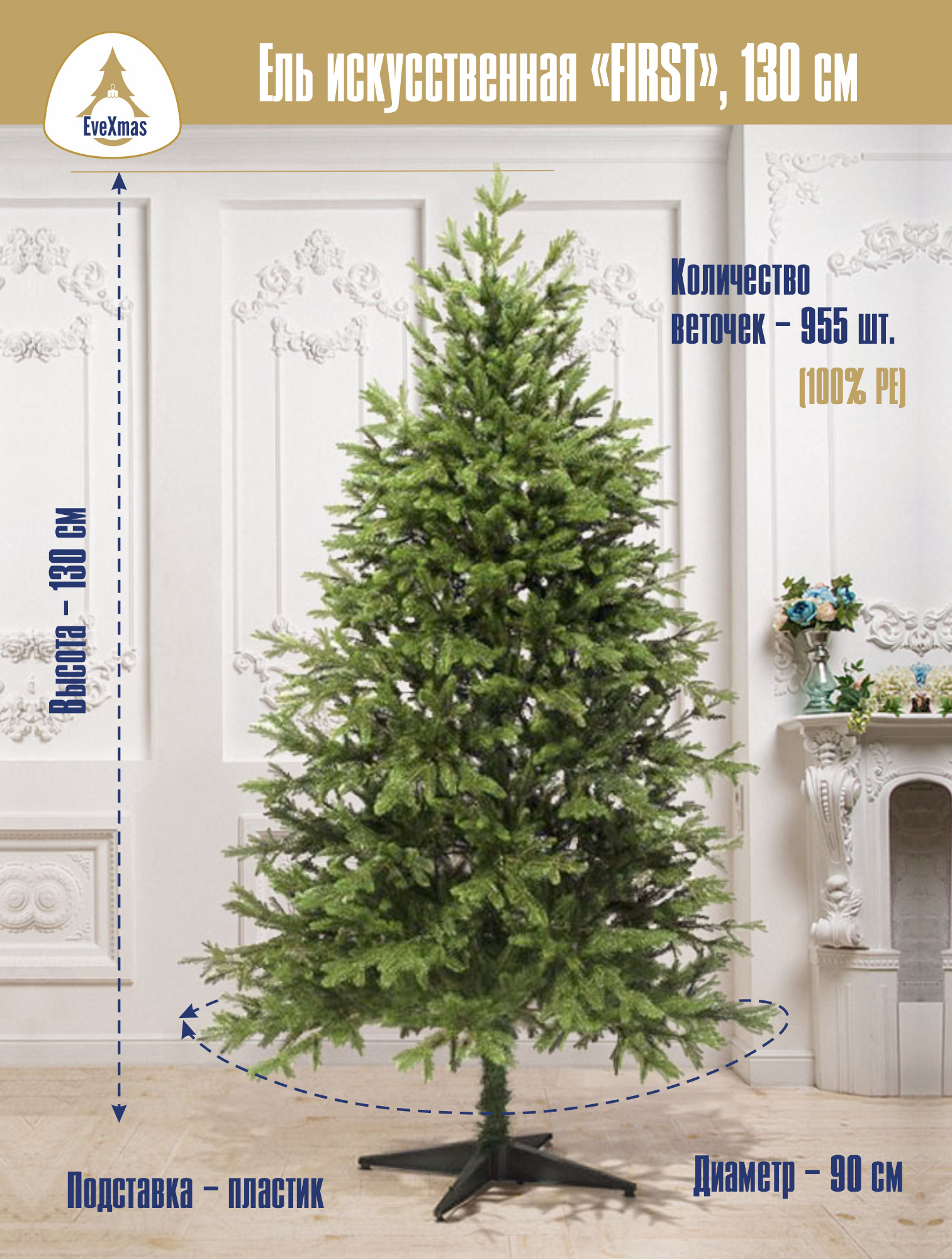Искусственная Елка EveXmas FIRST, Литая, 130 см