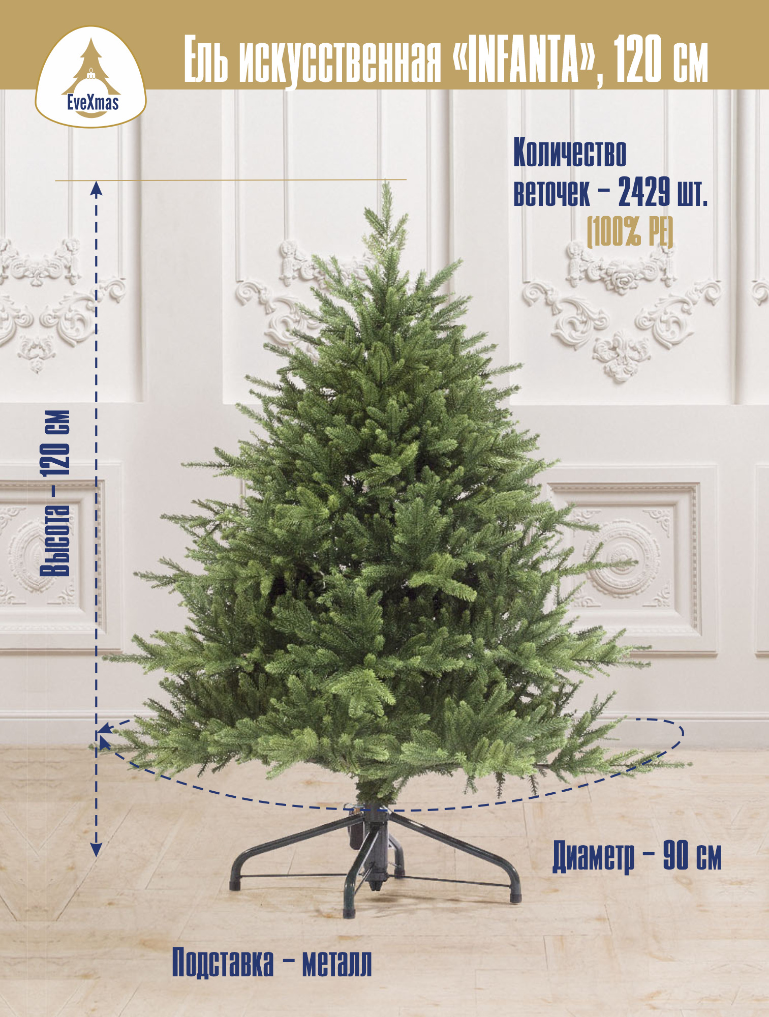 Искусственная Елка EveXmas ATLAS PREMIUM, Литая, 90 см