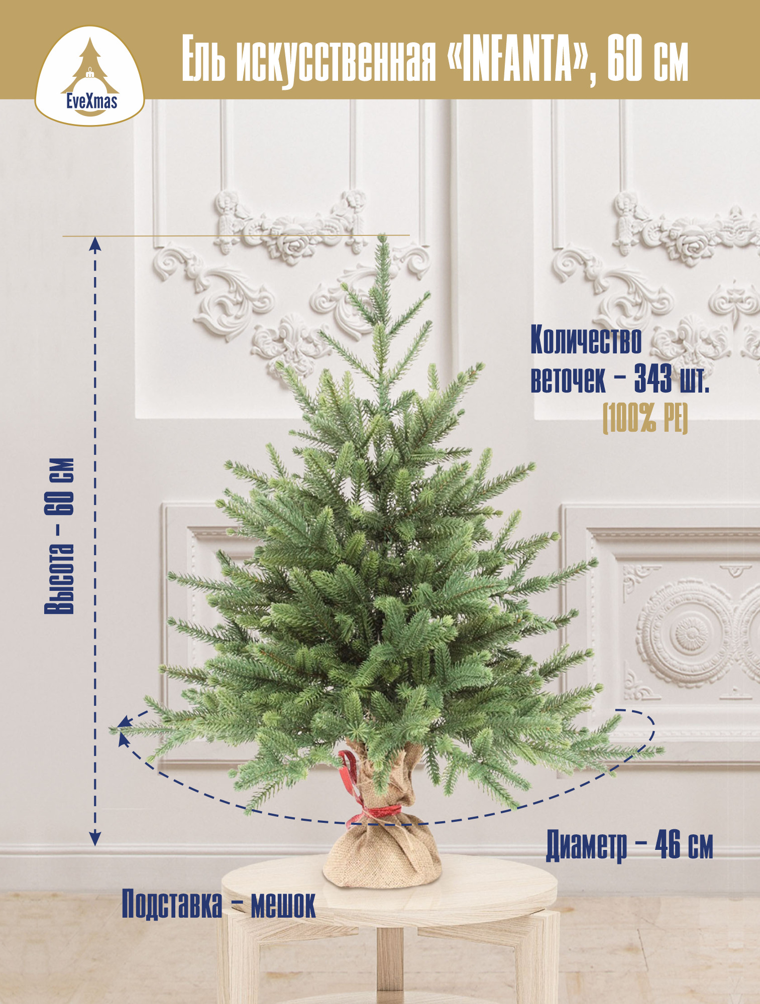 Искусственная Елка EveXmas INFANTA, Литая, 60 см