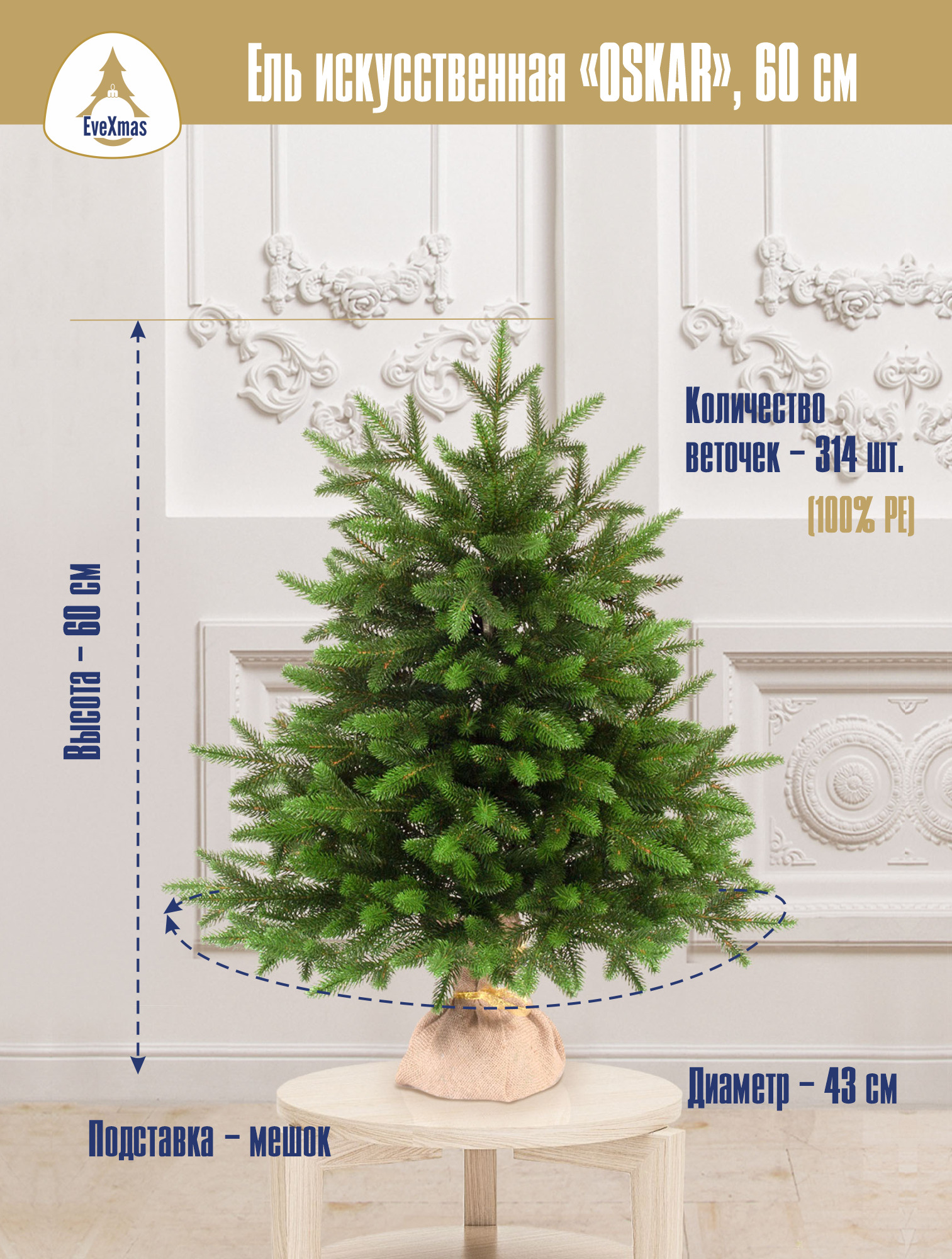 Искусственная Елка EveXmas OSKAR, Литая, 60 см