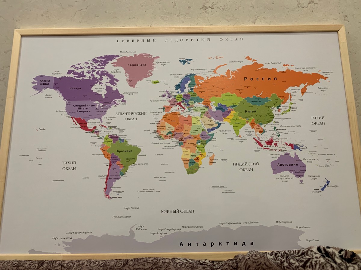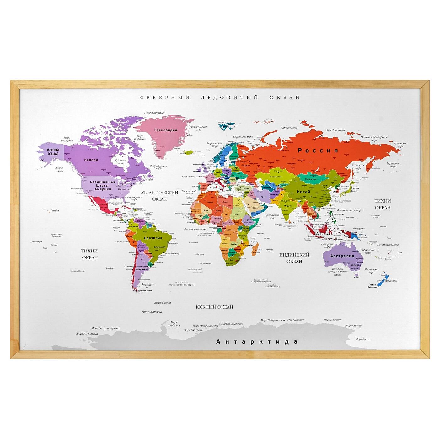 Карта мира на пробковой доске Classic 2, 60 х 90 см
