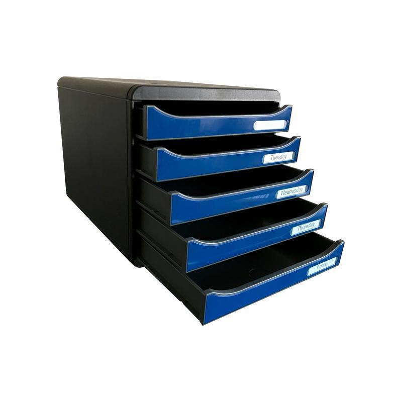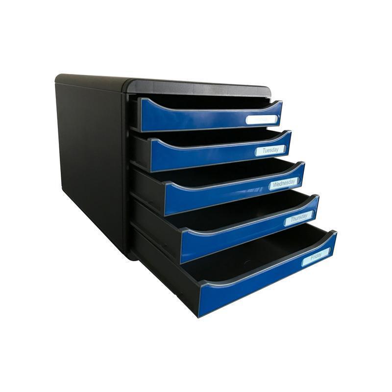 Бокс с выдвижными лотками Exacompta Big Box Plus, закрытый, 5 лотков, черный/синий, А4 (3097203D)