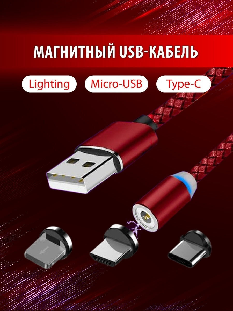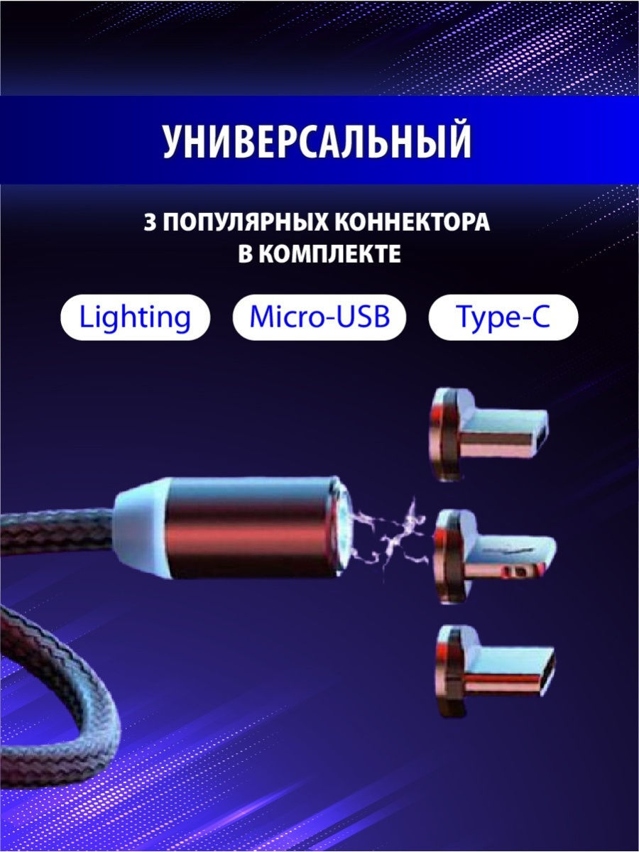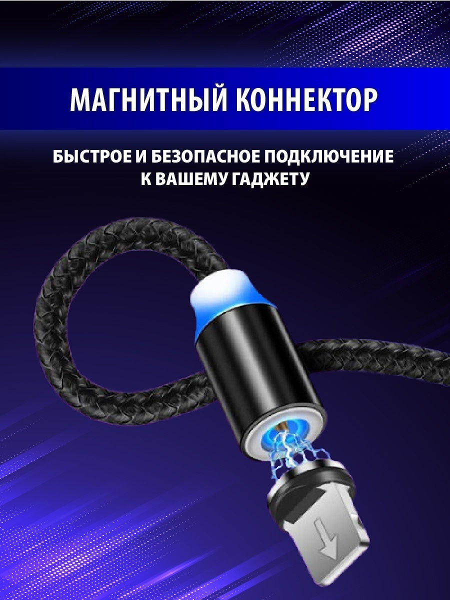 Магнитный кабель для зарядки телефона/зарядка для айфона/на андроид/Micro USB/lightning/type-c/3в1