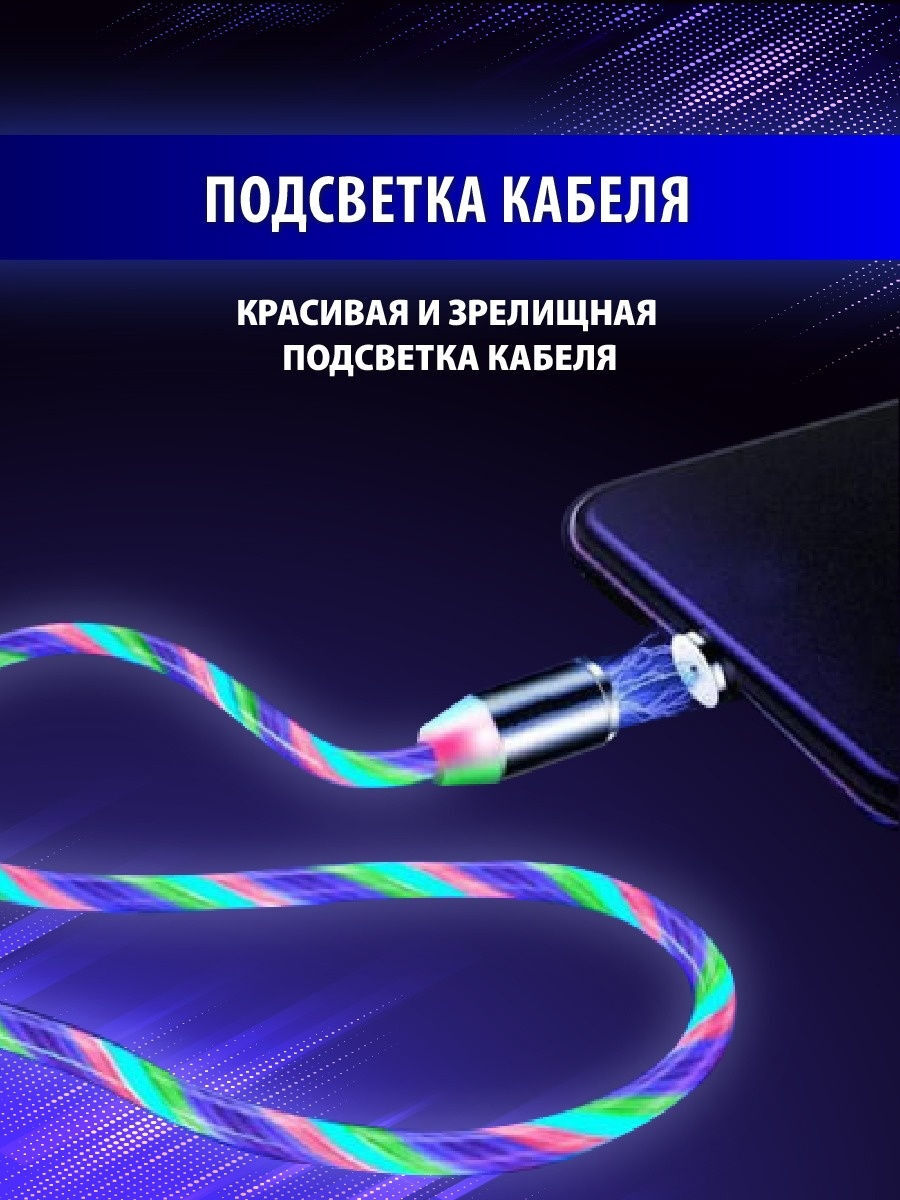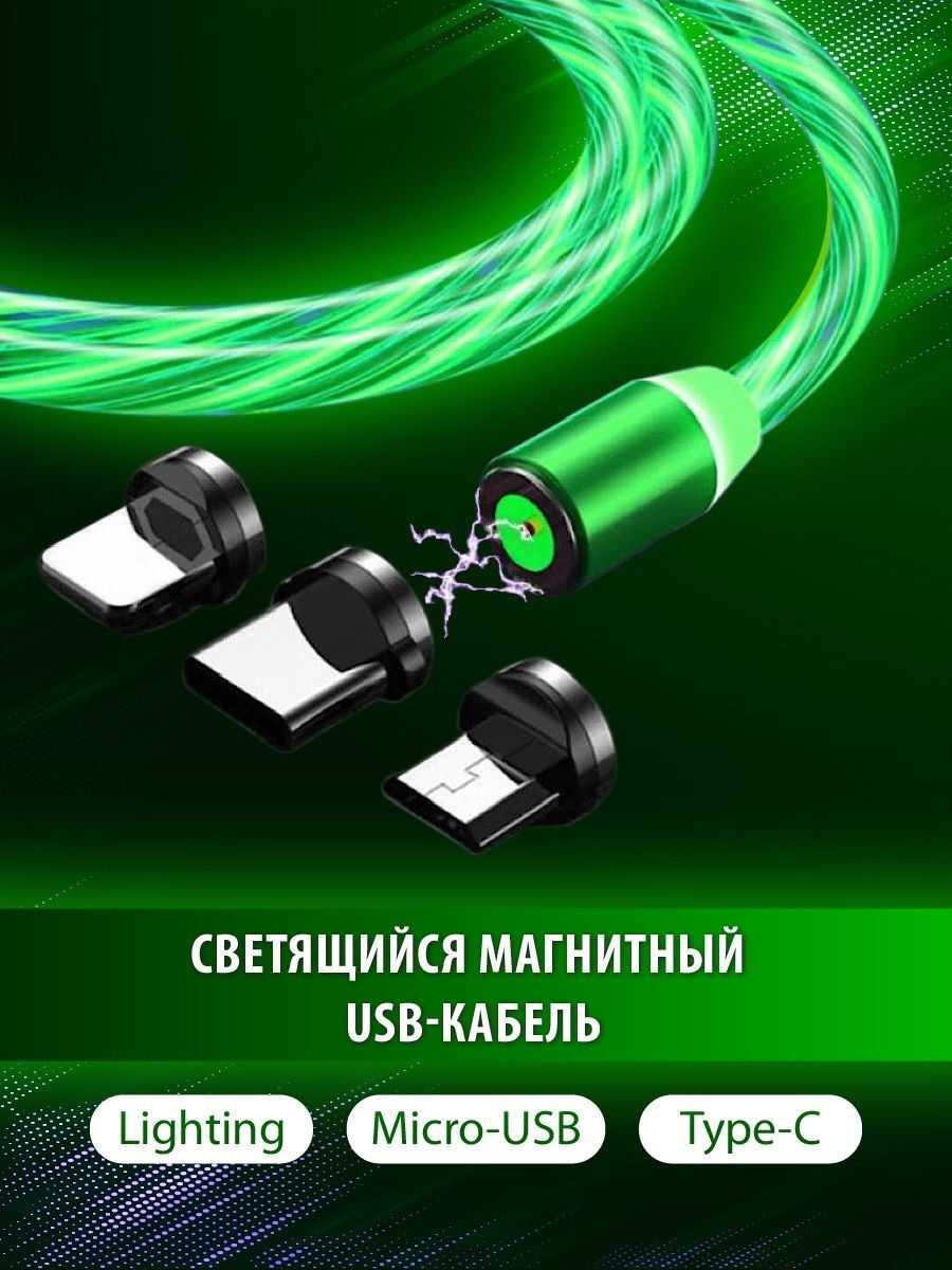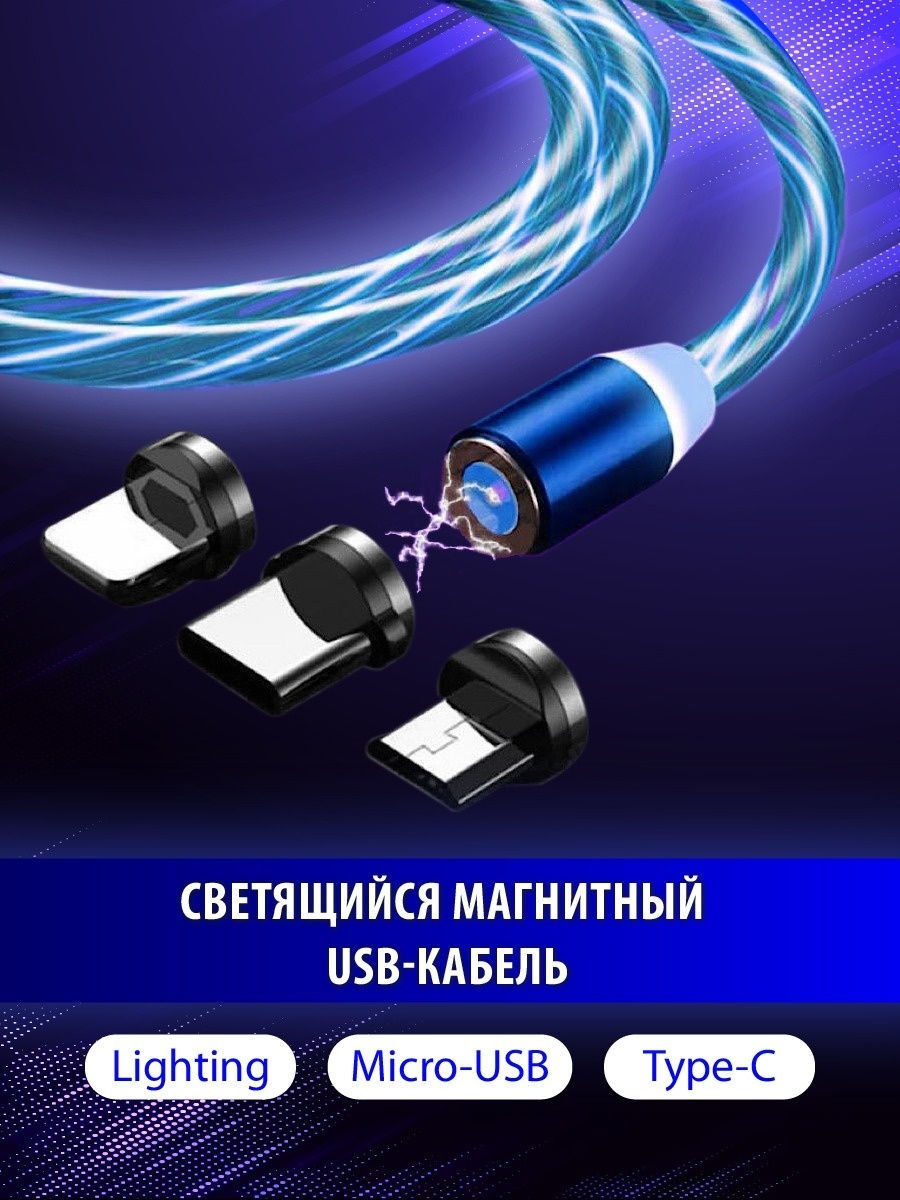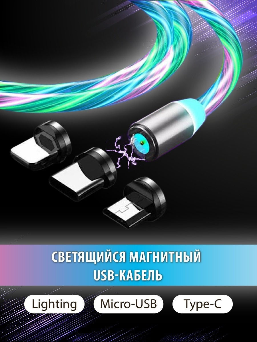 Магнитный светящийся USB-кабель для зарядки телефона 3 в 1.кабель на айфон,андроид,микро юсб, type-c