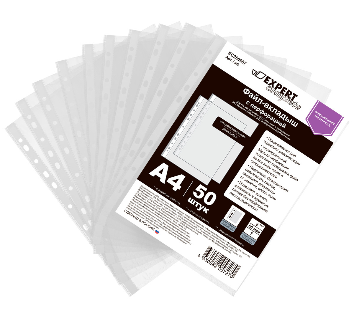 Файл с перфорацией "Expert Complete" А4 60 мкр. 50 шт. глянцевый прозрачный EC260607