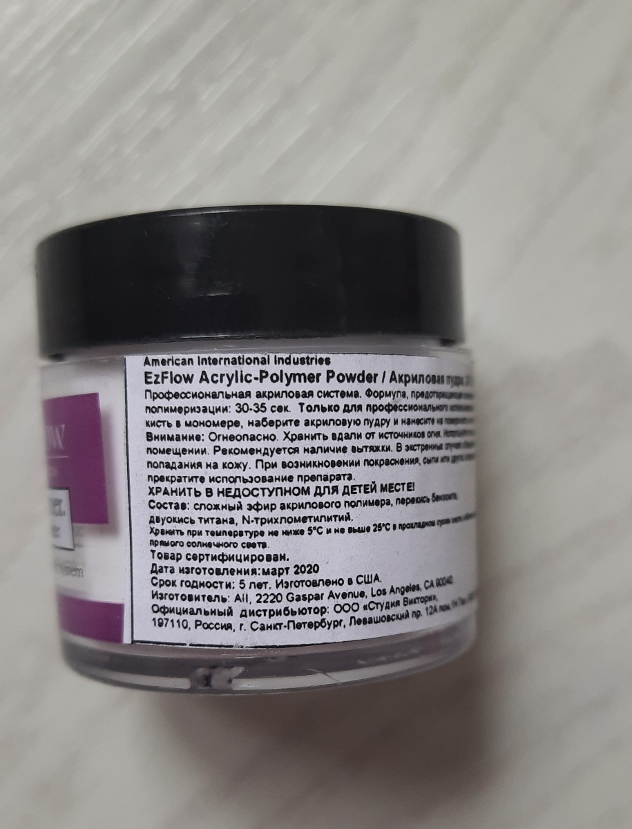 EzFlow, белая акриловая пудра A-Polymer White Acrylic Powder, 21 г.