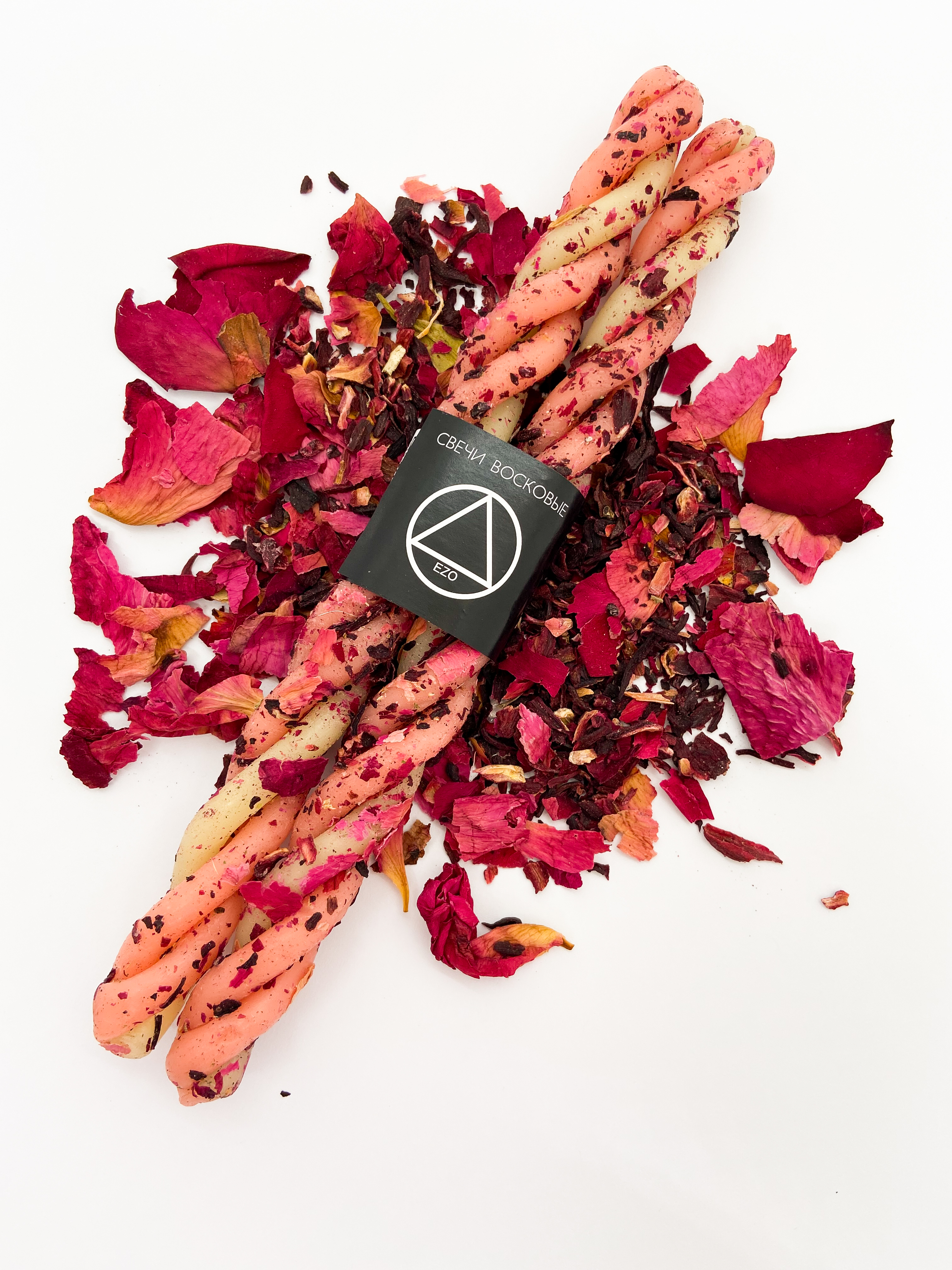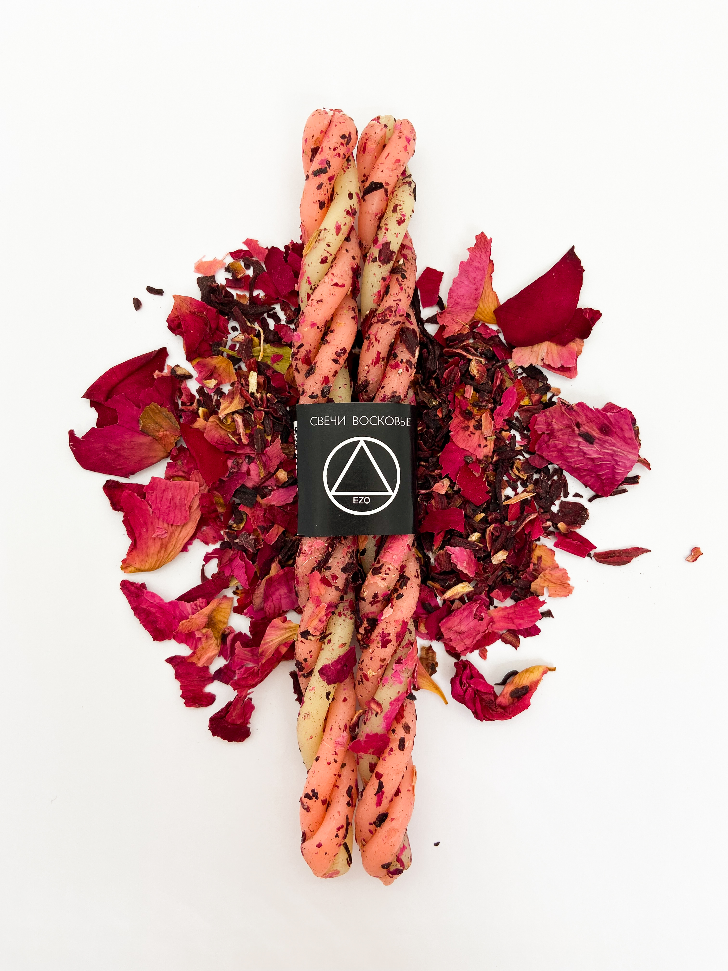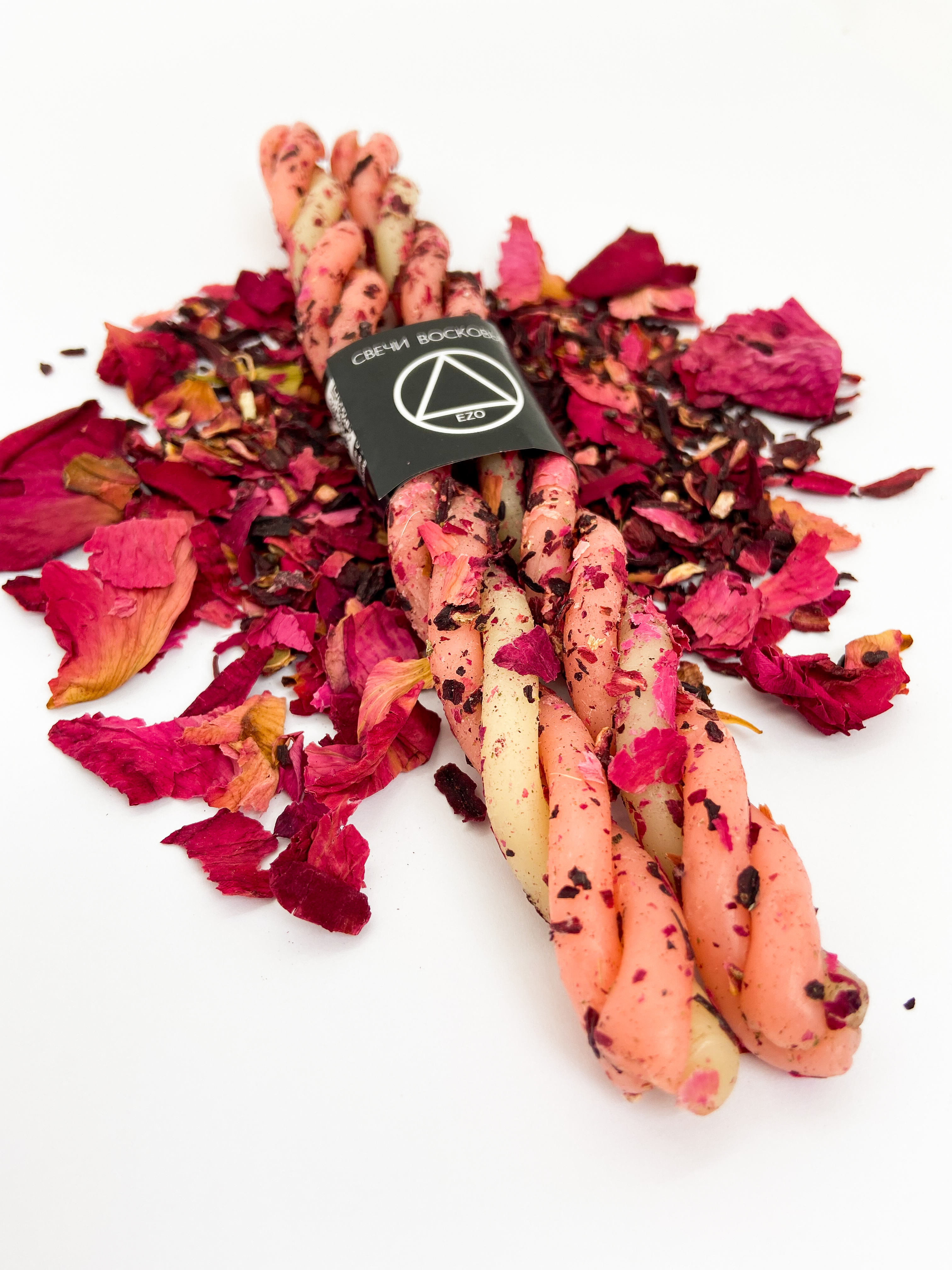 Свечи восковые EZO скрутка с травами "Влечение", 2 шт.