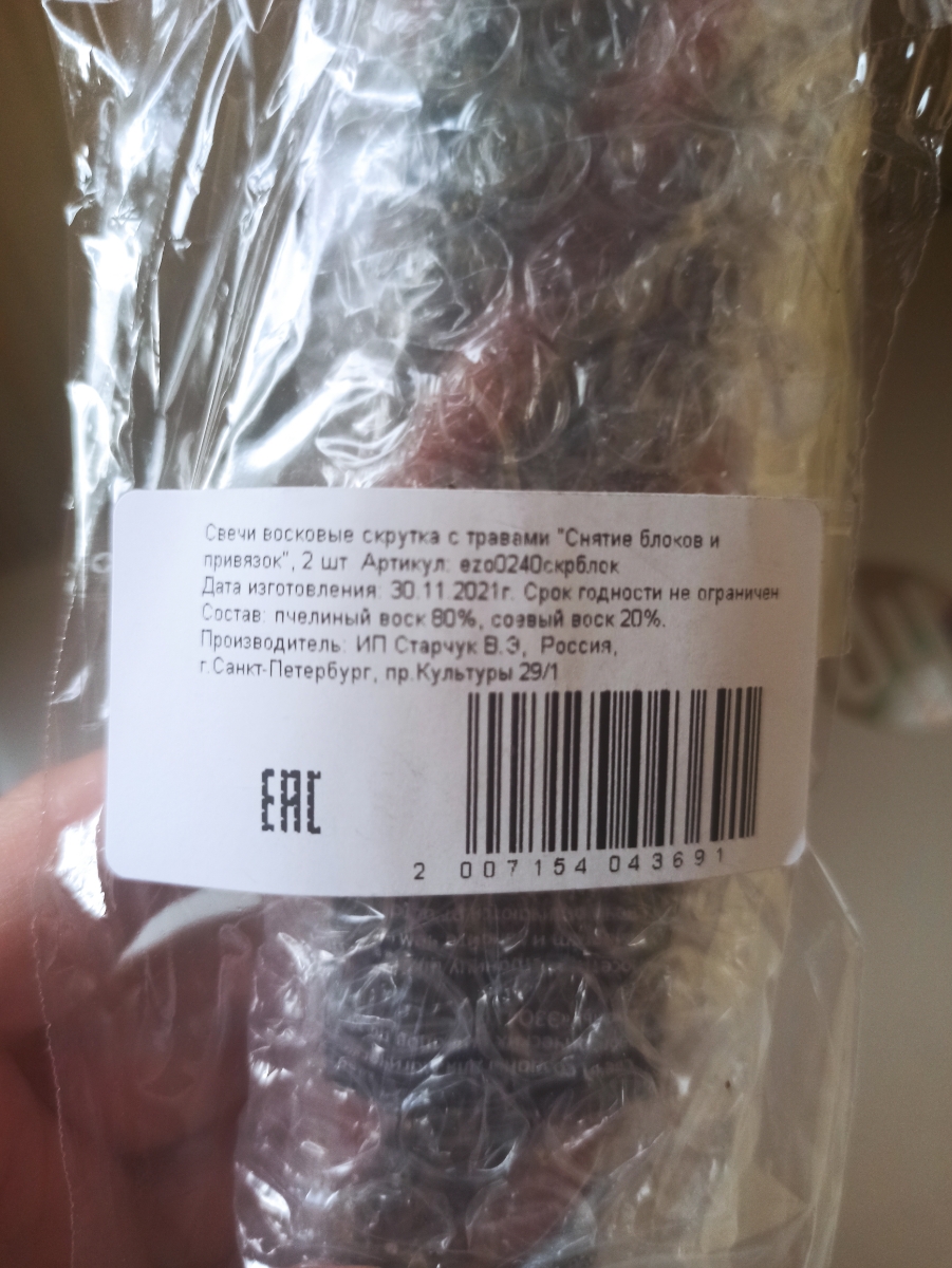 Свечи восковые EZO скрутка с травами "Снятие блоков и привязок", 2 шт.