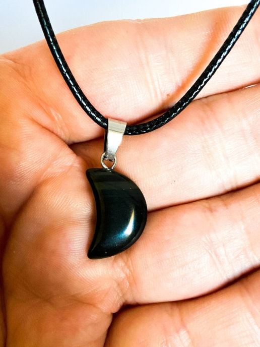 Кулон EZO "Полумесяц. Черный обсидиан", 1 шт.