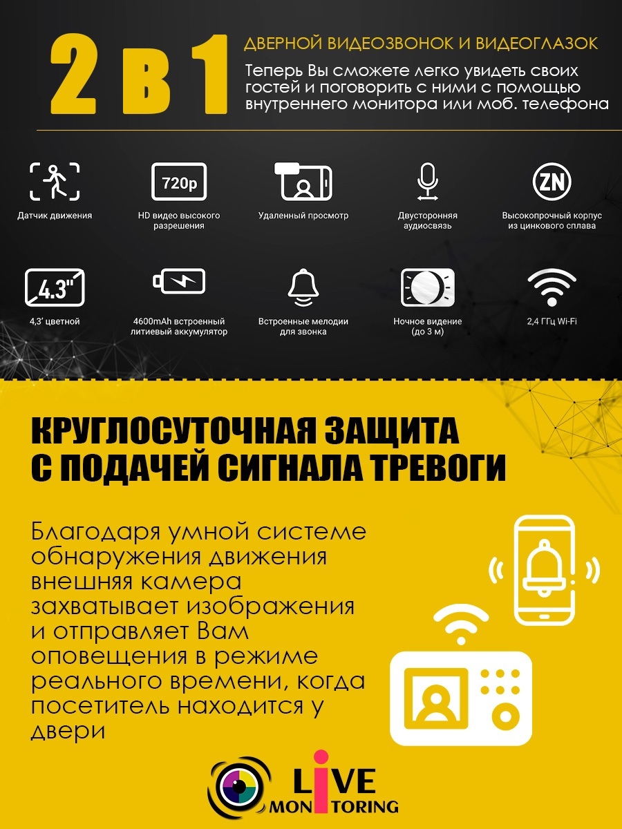 Wi-Fi камера EZVIZ C3N 2.8mm, FullHD, цветная ночная съемка, распознование человека