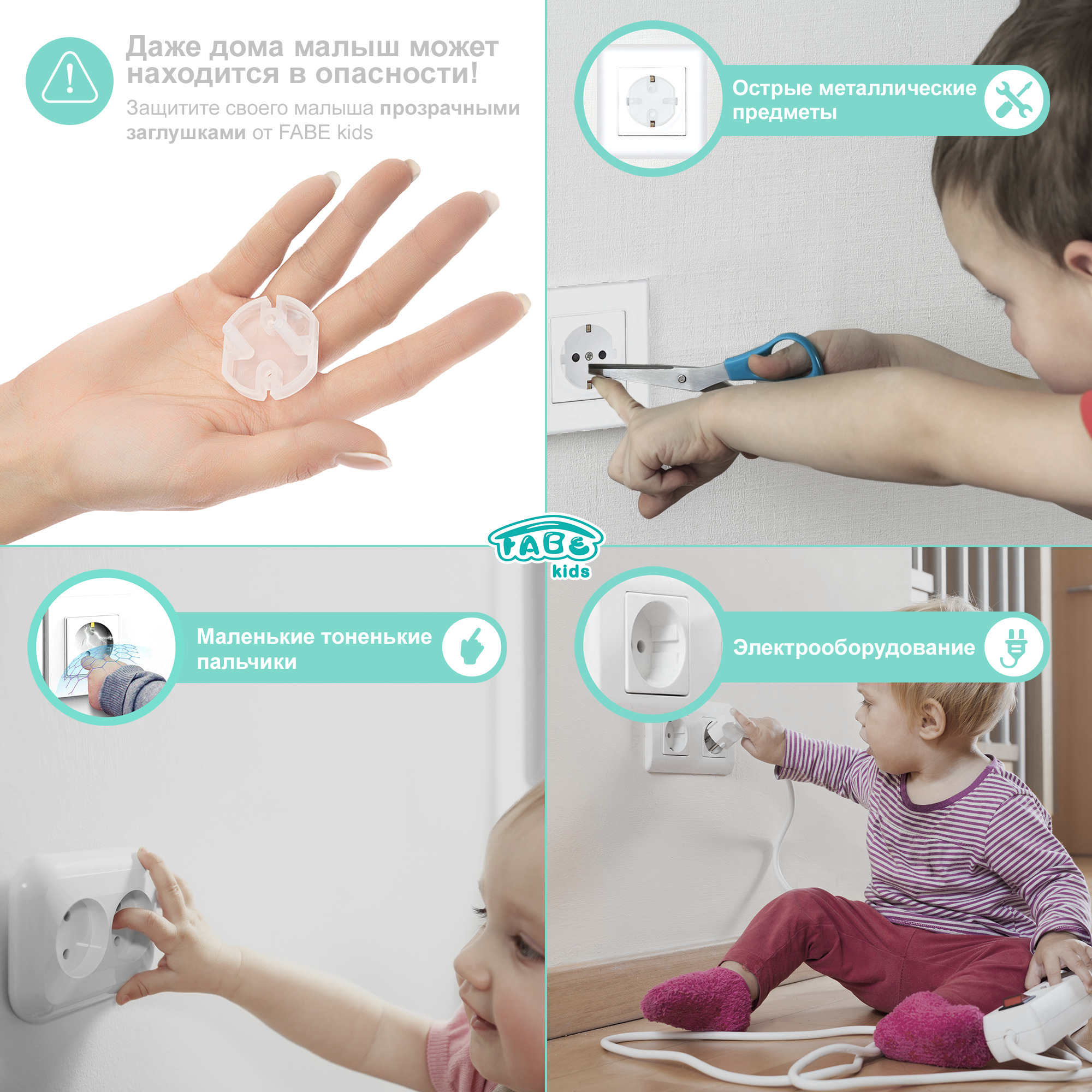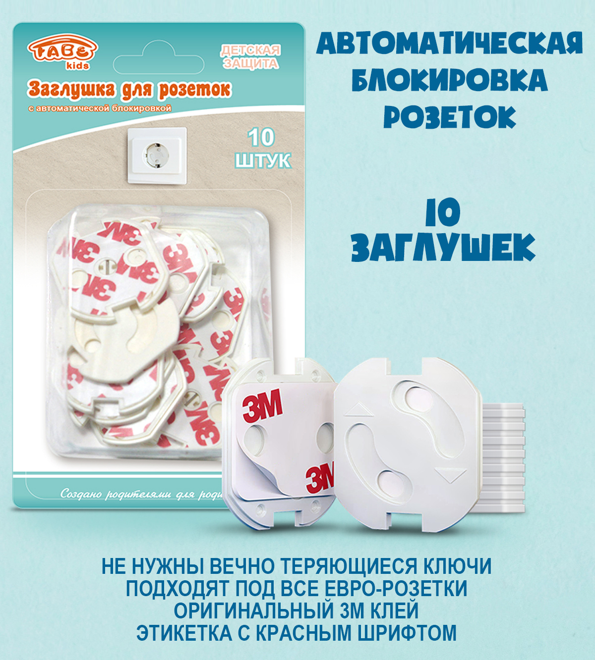 Детская заглушка для розеток с автоматической блокировкой на оригинальном клее 3М - 10 штук