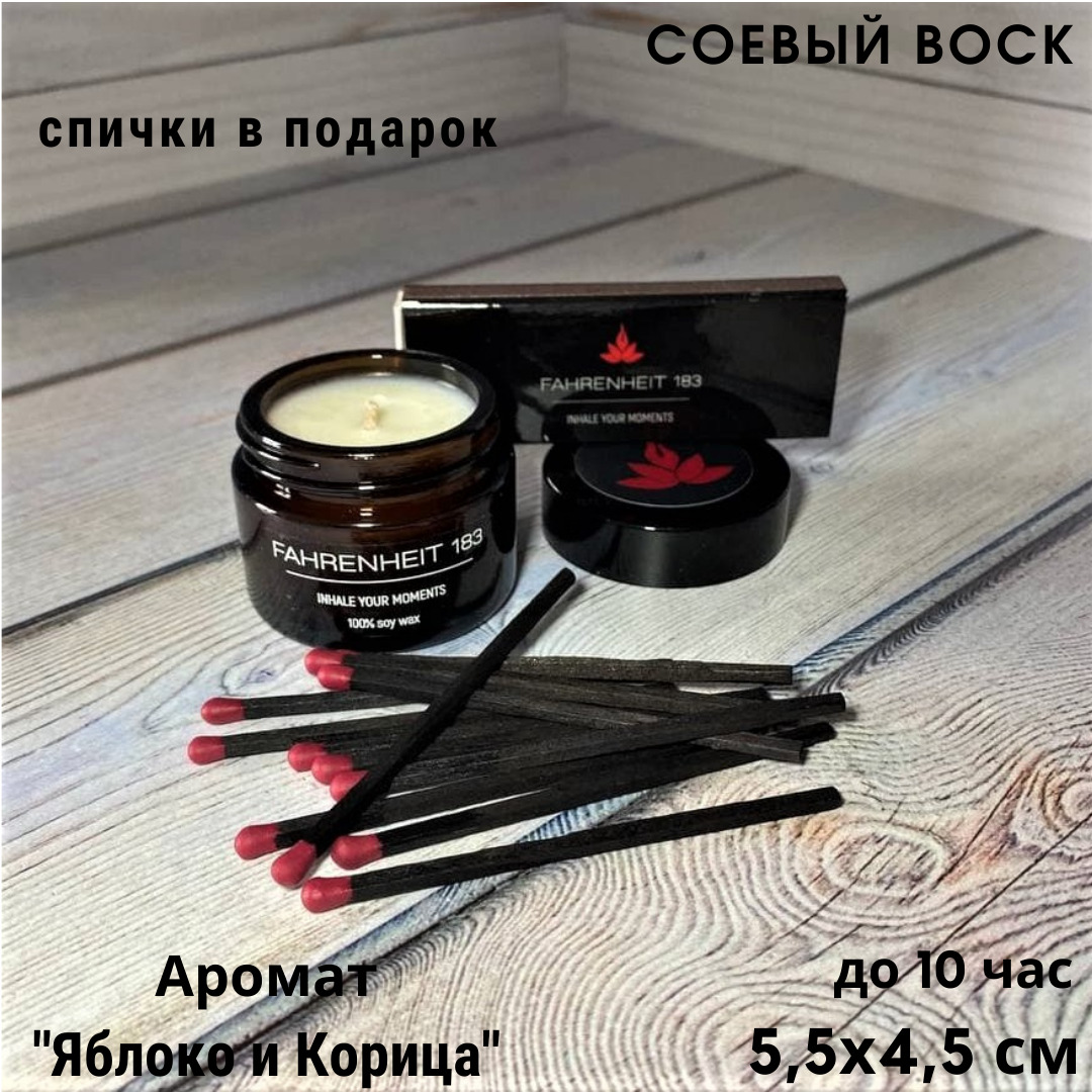Свеча ароматическая FAHRENHEIT 183 "Яблоко и корица", 4.5 см х 5.5 см, 1 шт