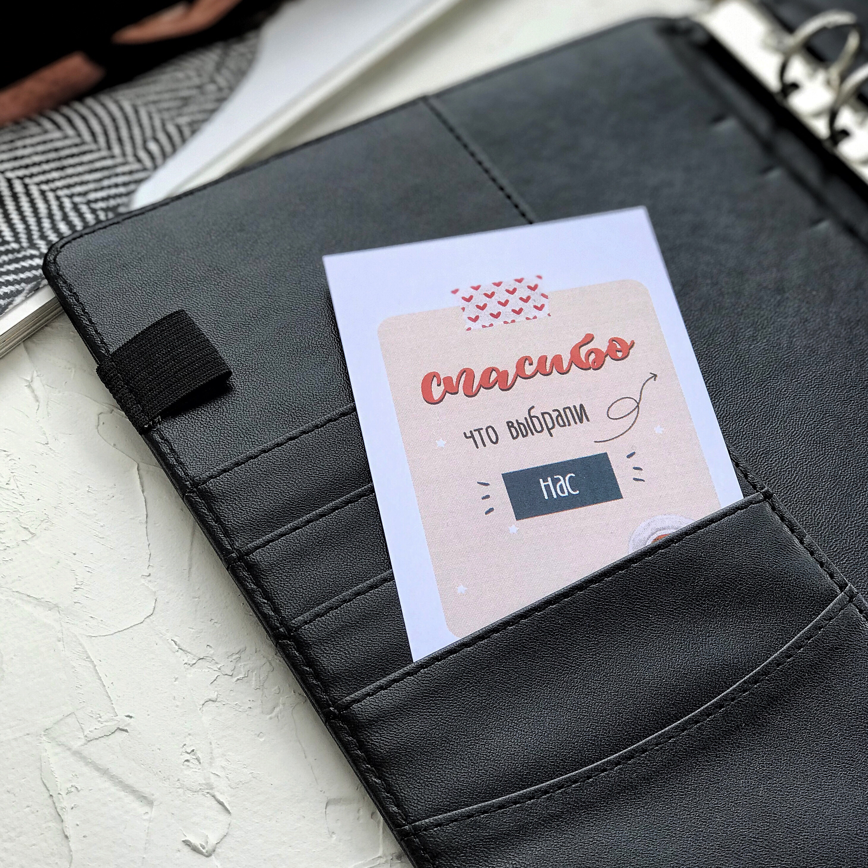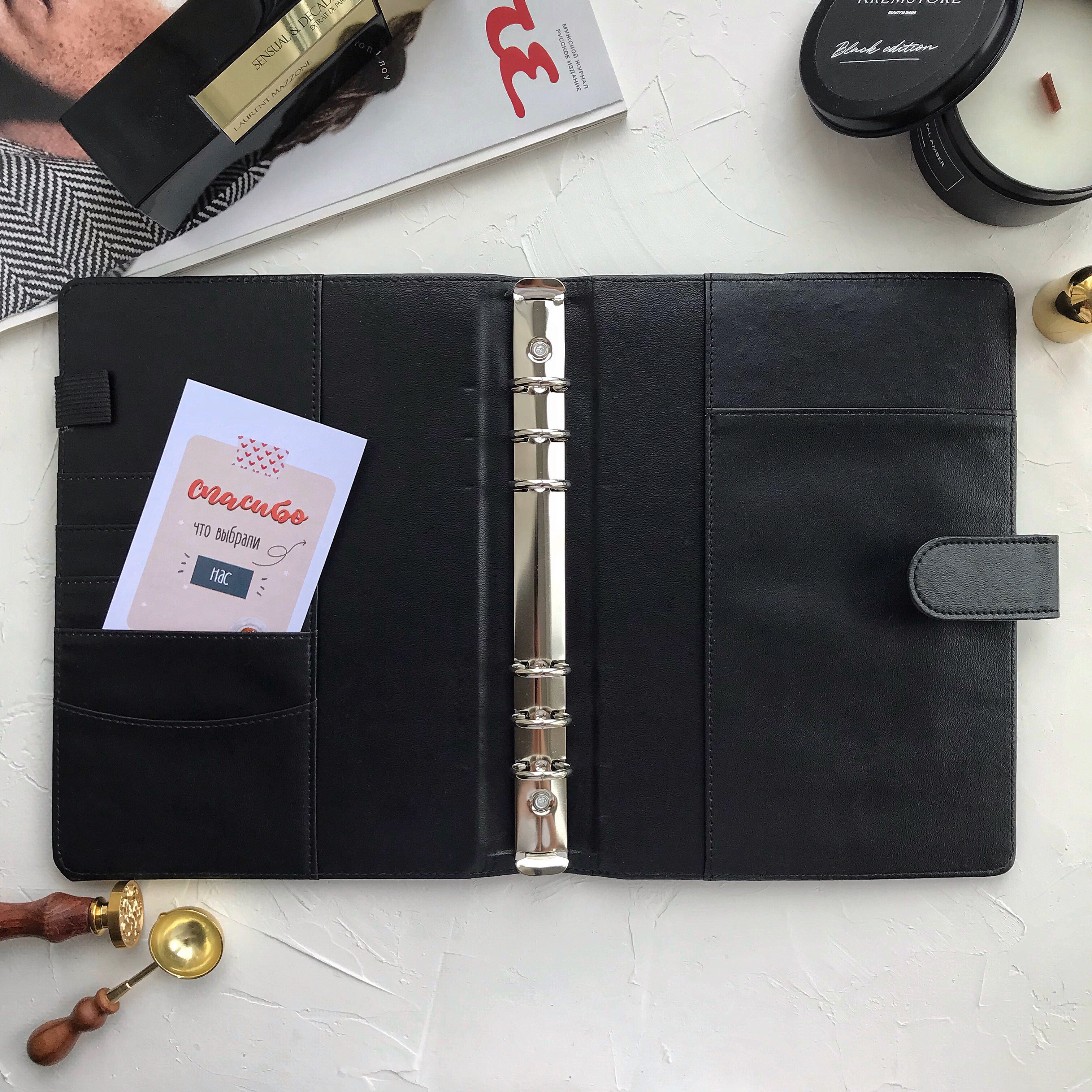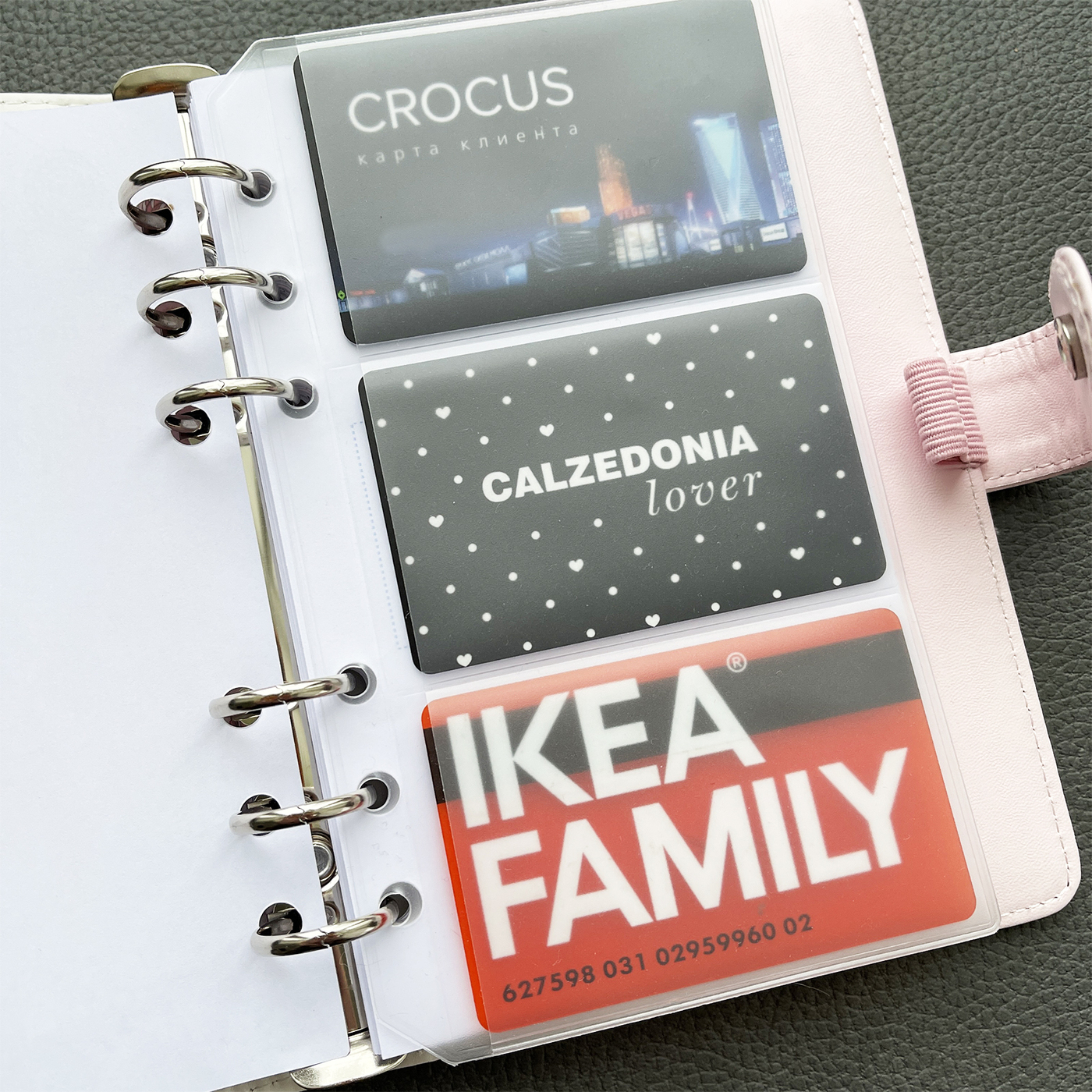 Файл - вкладыш в ежедневник с 6-ю кольцами c кармашками для визиток или карт. А6